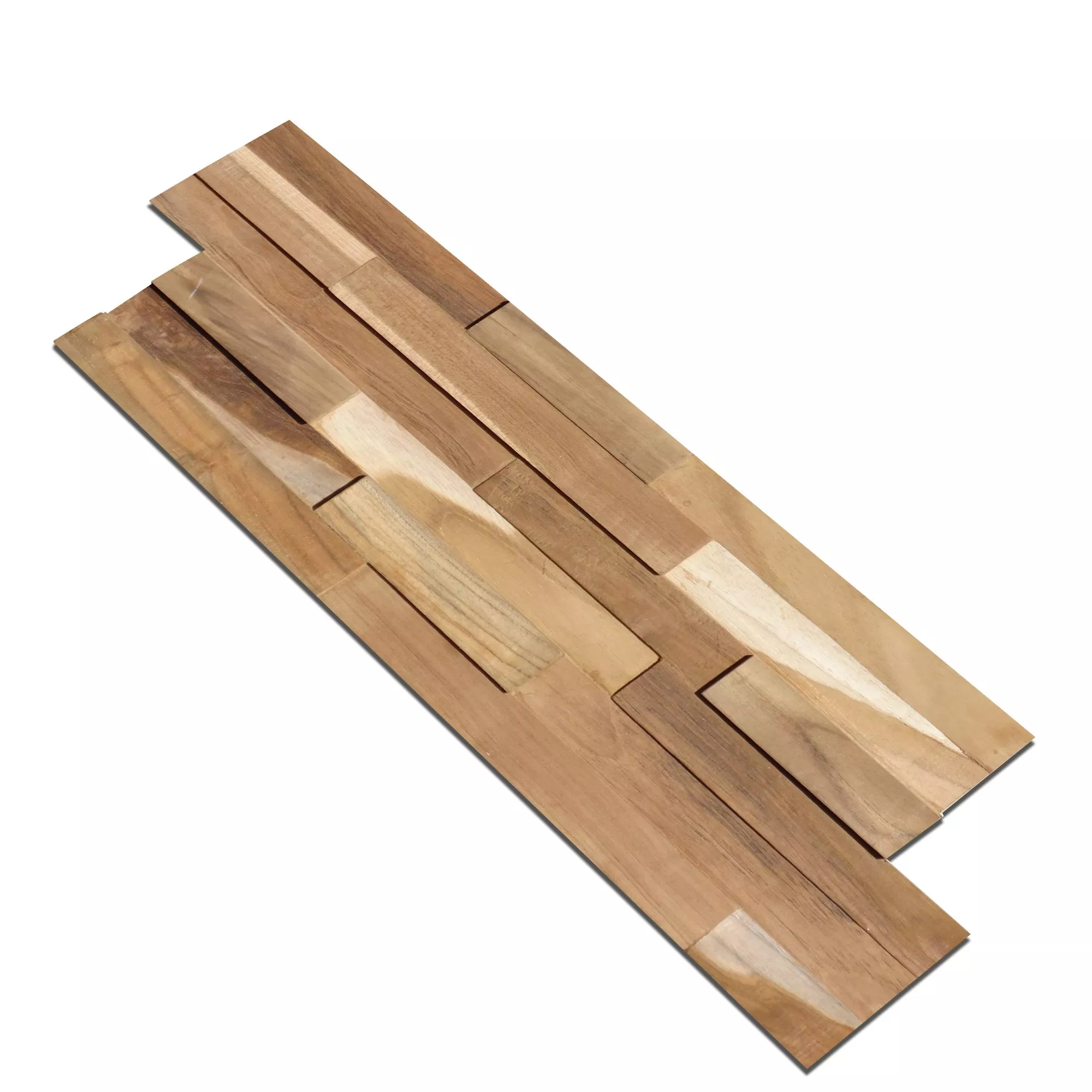 The wall paneling of the Luxembourg Natura wood facings consists of individual tiles measuring 15 x 60 centimetres. The facing brick consists of wooden sticks that create a rustic wall covering. For the craftsman, processing small wooden sticks would be tedious, which is why the sticks were practically joined together on tiles. This makes the work easy. The naturalness of the material is excellently expressed through the different wood grains and shades. Mother nature fascinates with differences. For the viewer, the facing brick appears in a 3D look.