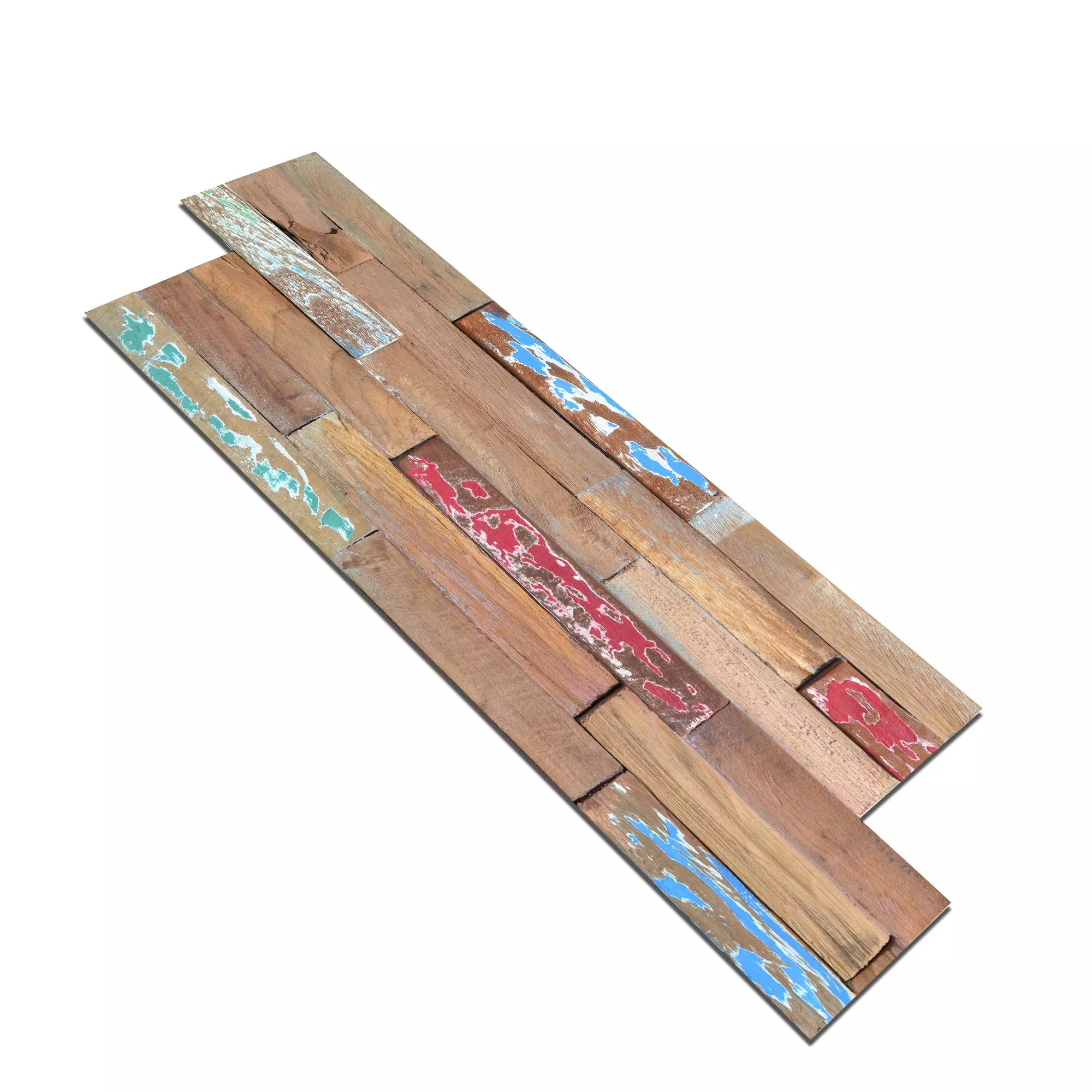 Wall paneling Luxemburg Painted wood facings are individual tiles measuring 15 x 60 centimetres. The facing brick consists of wooden sticks that create a rustic wall covering. For the craftsman, processing small wooden sticks would be tedious, which is why the sticks were practically joined together on tiles. This makes the work easy. The naturalness of the material is excellently expressed through the different wood grains and shades. Mother nature fascinates with differences. For the viewer, the facing brick appears in a 3D look.