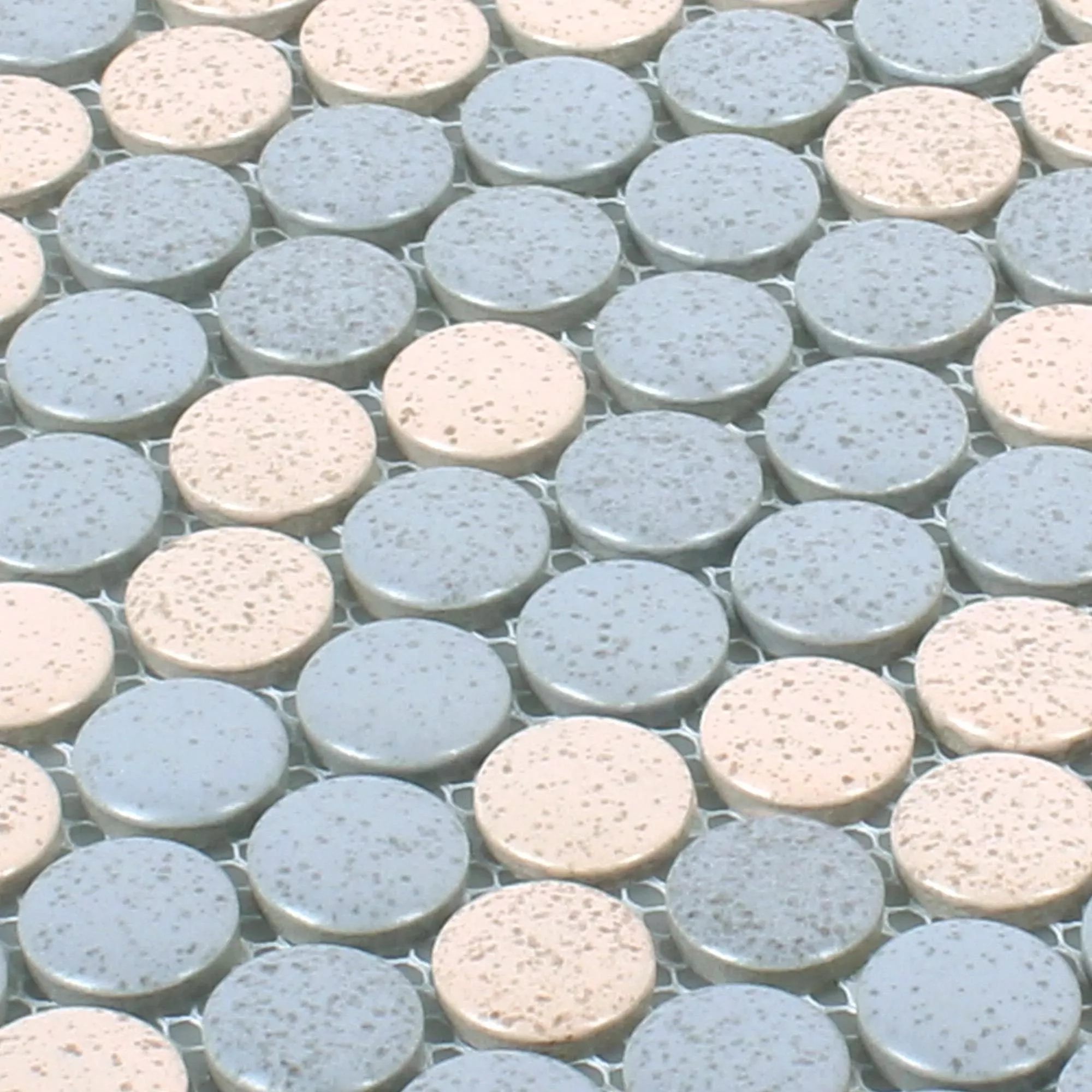 Button Mosaic Tiles Ceramic Brillo Beige Grey