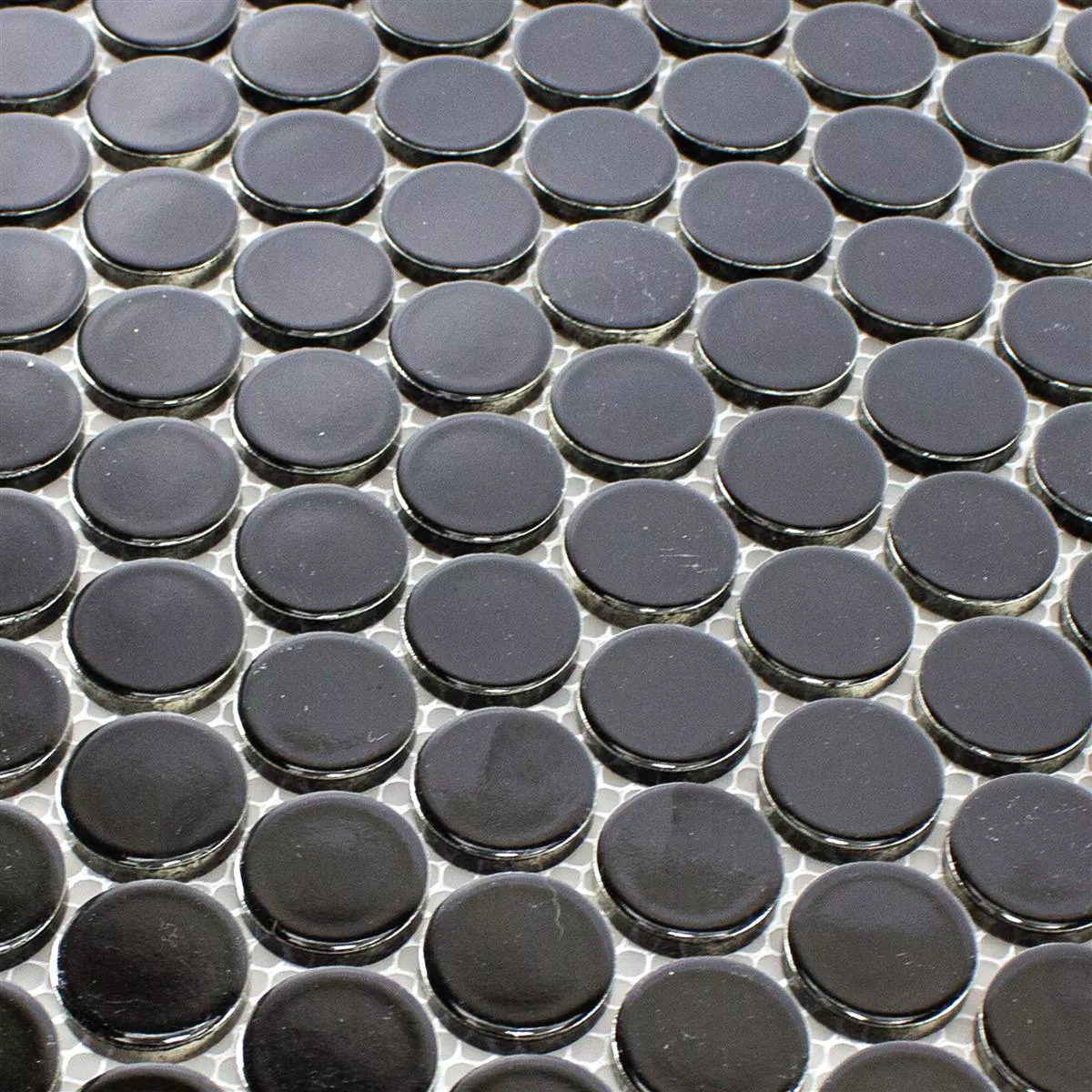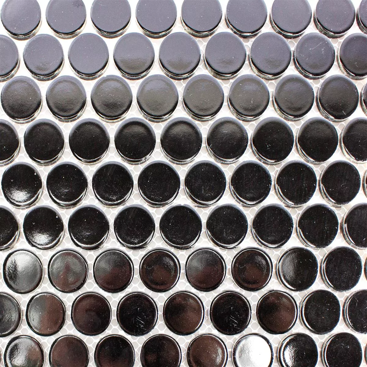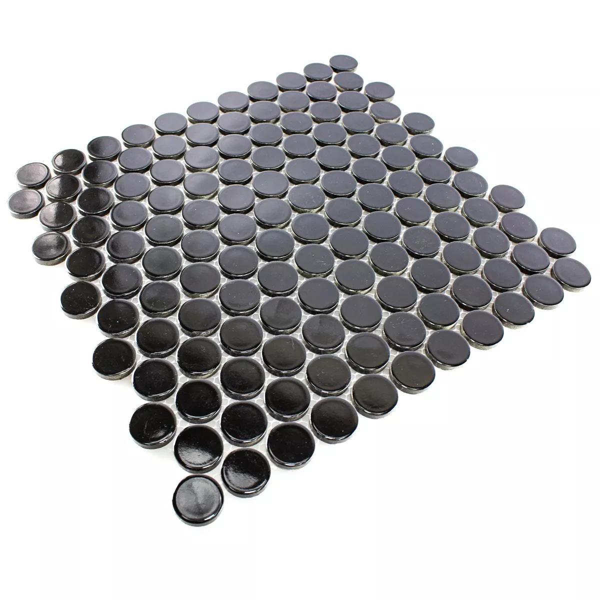 Ceramic Button Mosaic Tiles Harlingen Black Glossy