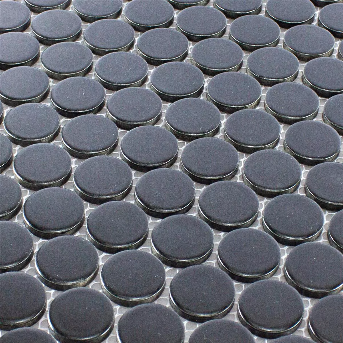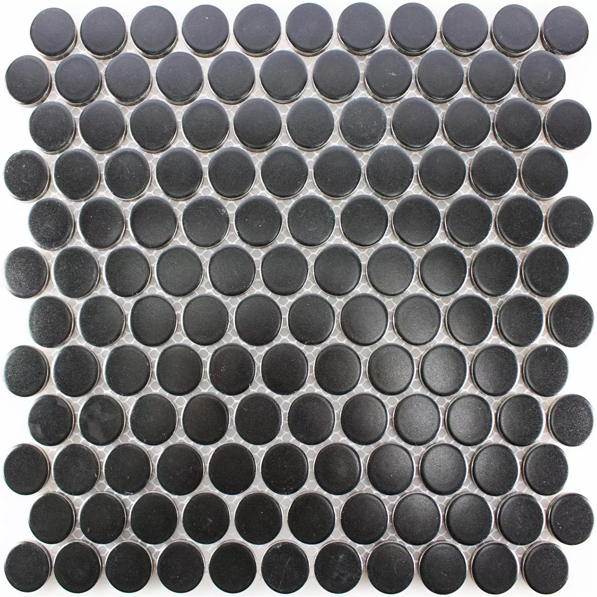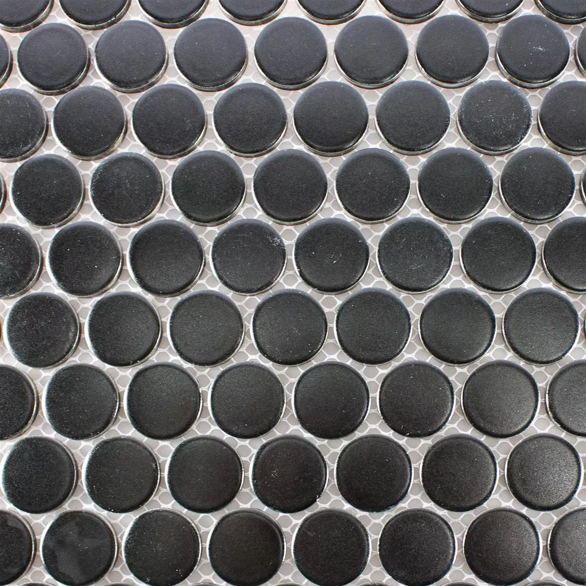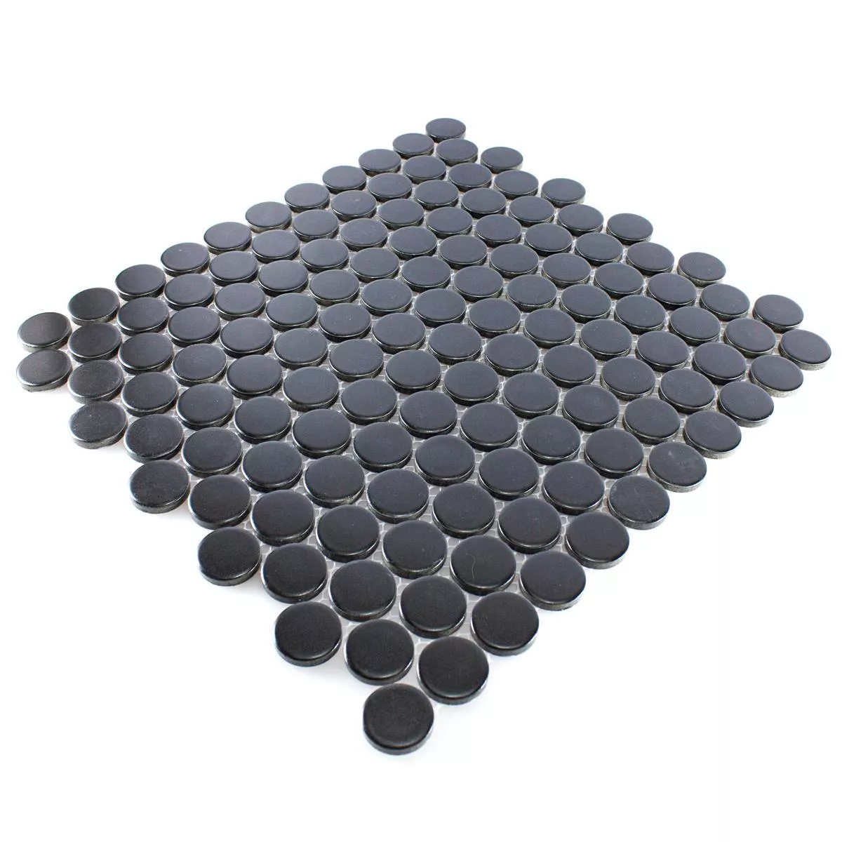 Ceramic Button Mosaic Tiles Harlingen Black Mat