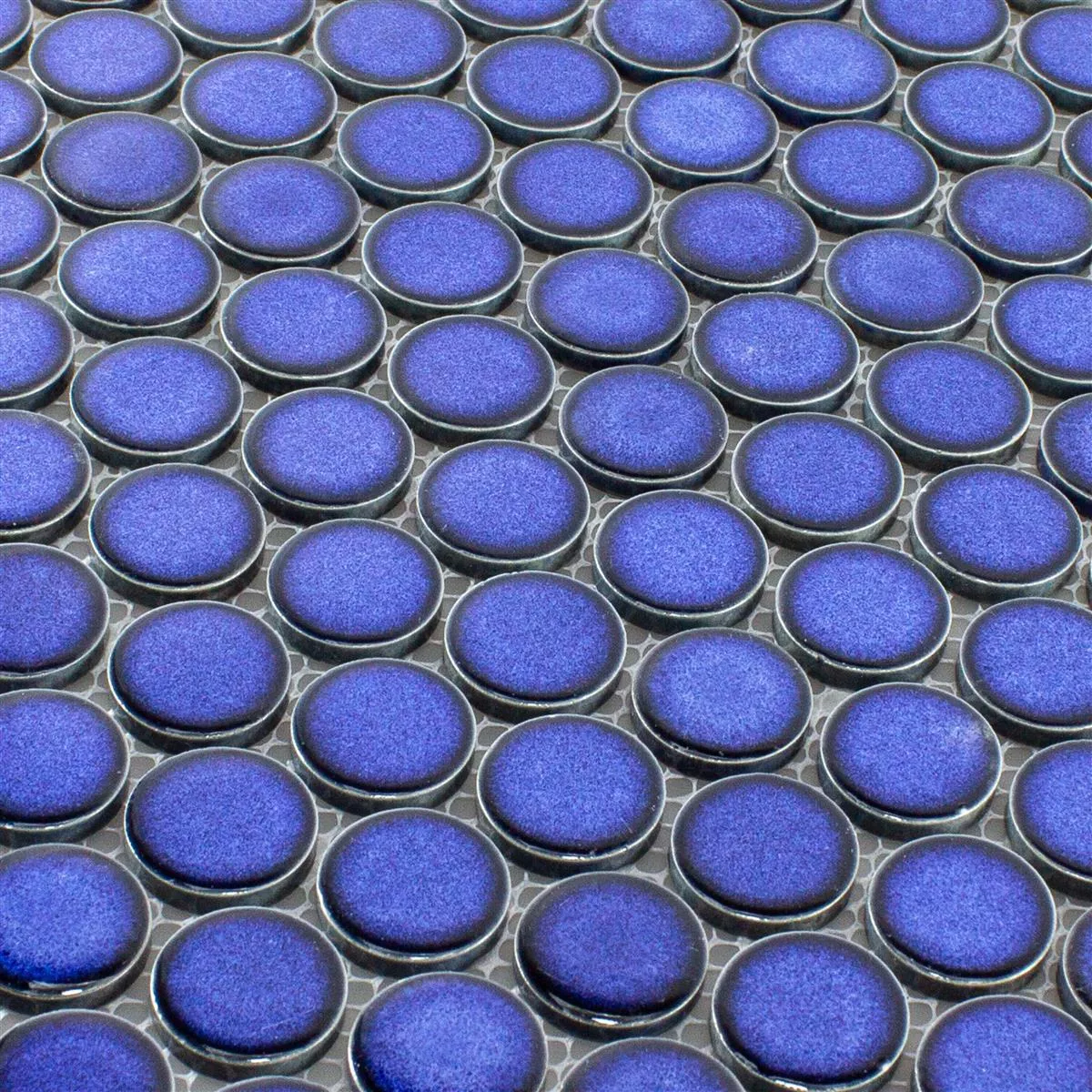 The ceramic button mosaic tiles in blue combine timeless design and versatile applications in a stylish overall package. With their round format and glossy surface, they give every room a modern and elegant look. The tiles can be used as wall, floor and mosaic tiles and are also ideal for outdoor use thanks to their glazed and frost-resistant properties.
