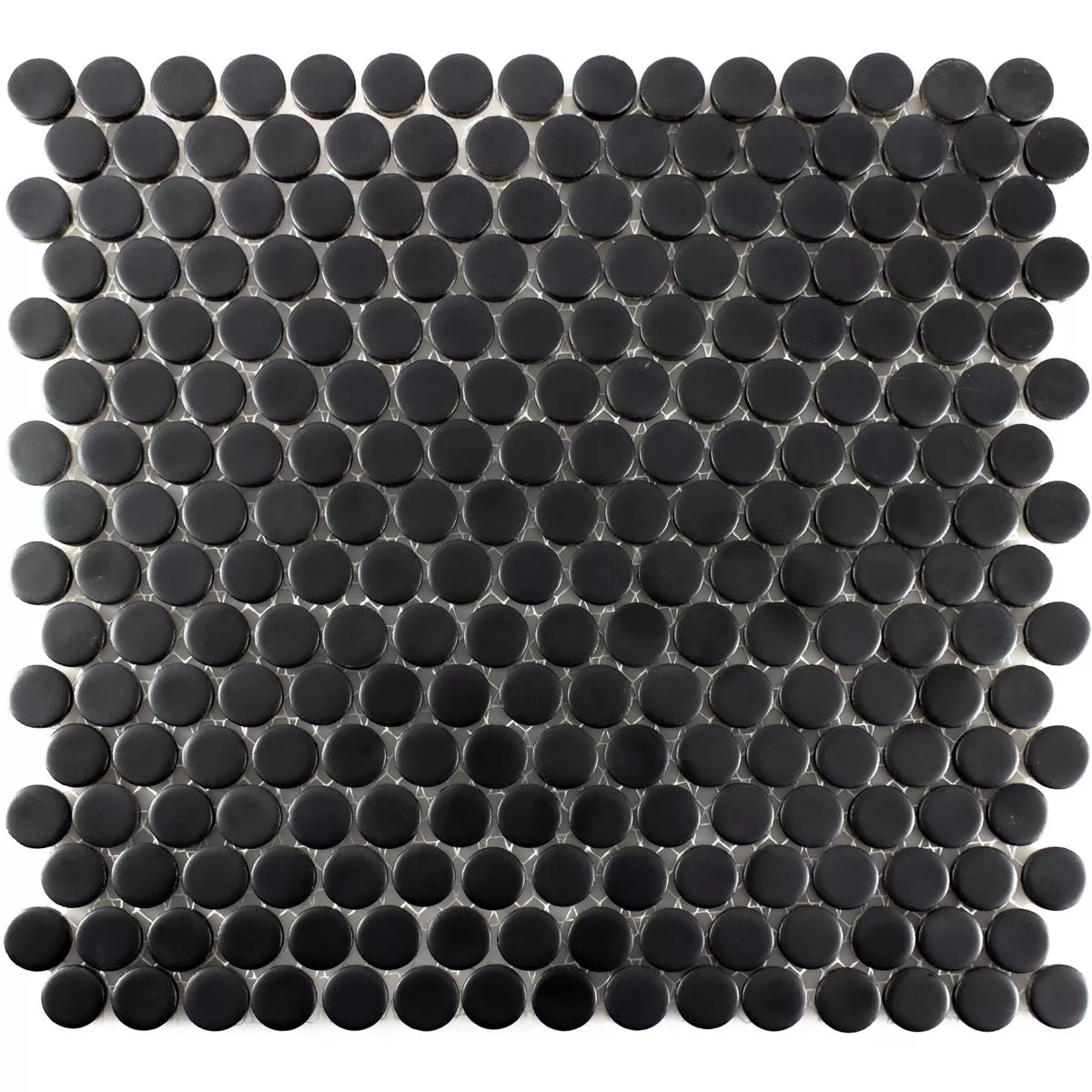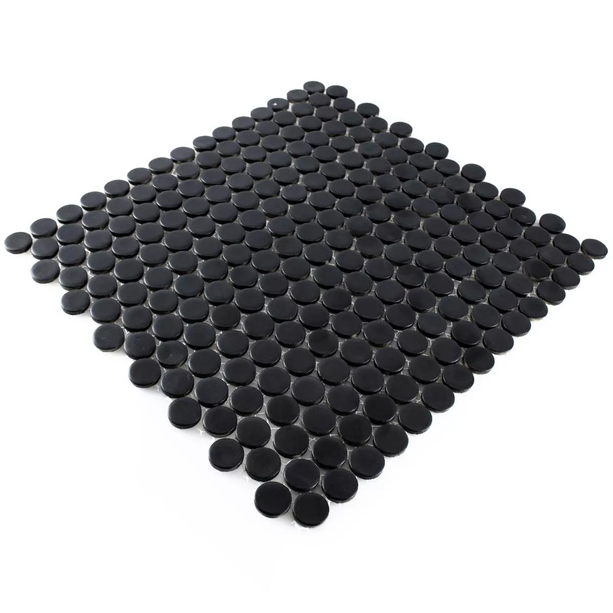 Ceramic Mosaic Tiles Button Yantra Black Mat