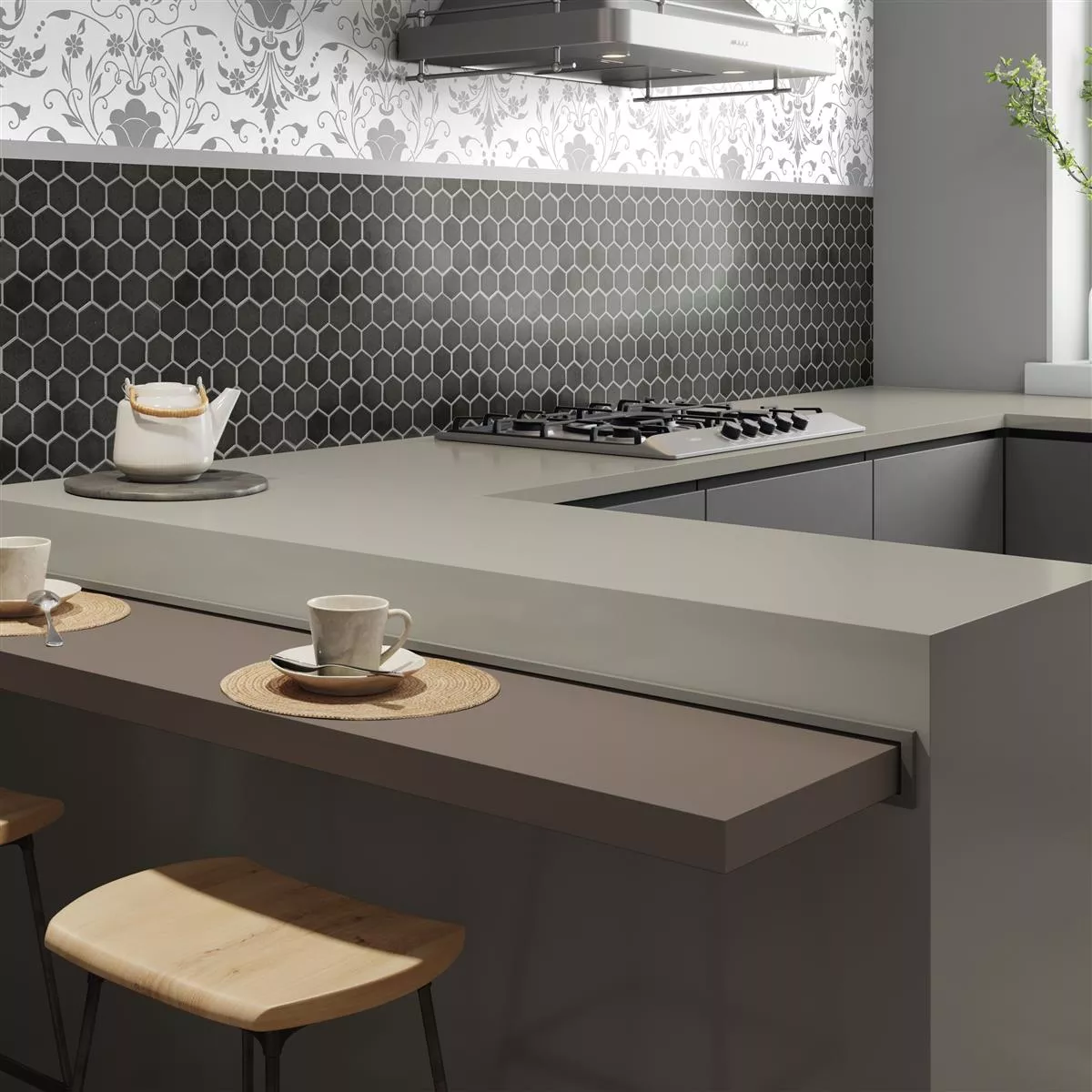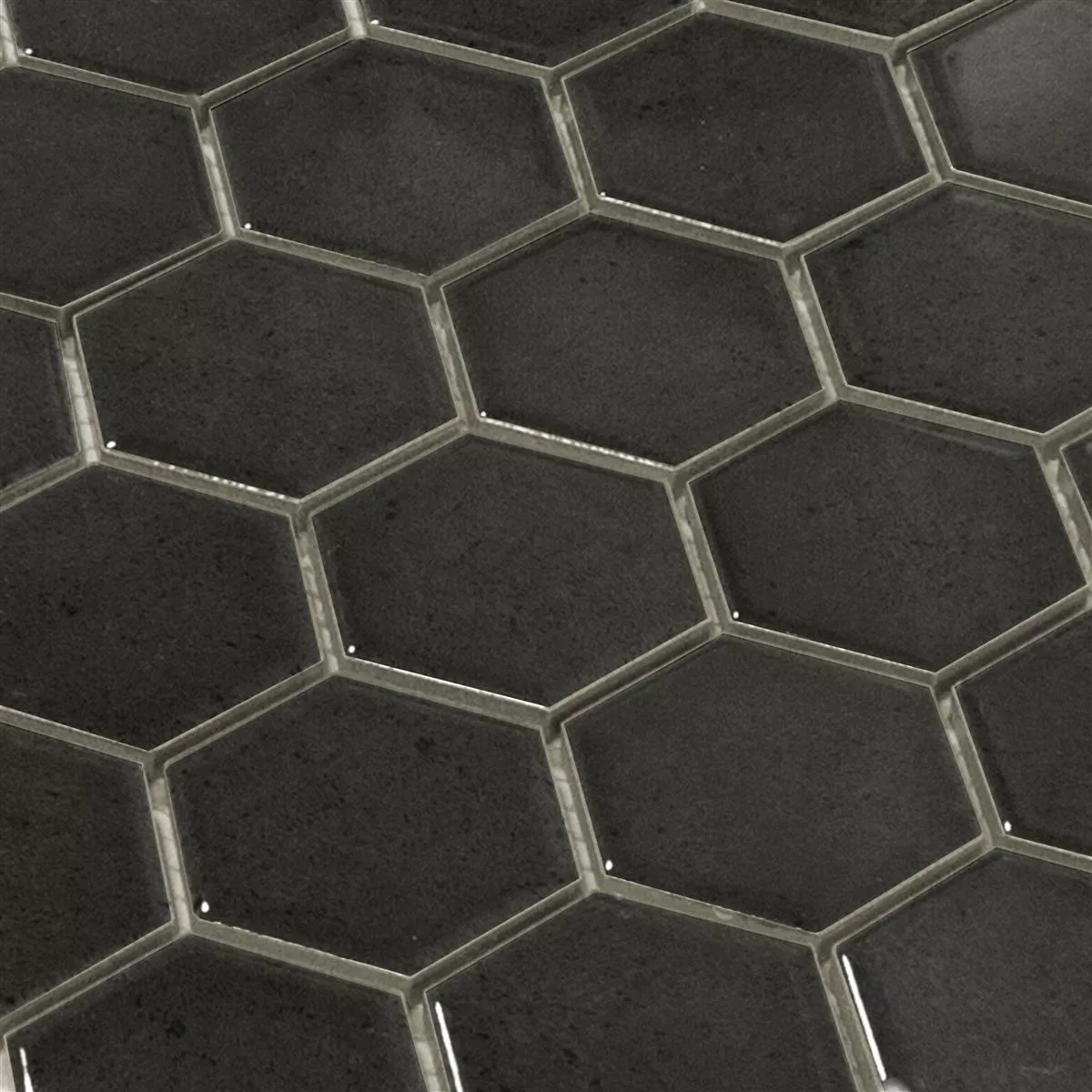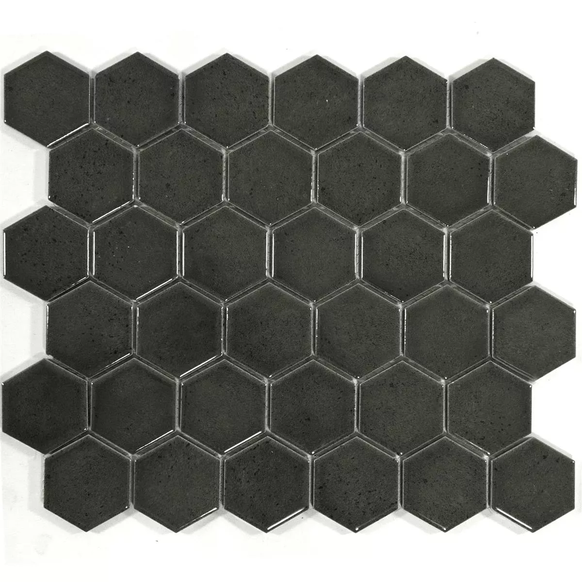The "Eldertown Hexagon Black" ceramic mosaic tiles give your rooms a modern and elegant touch. With a hexagonal format (32x28cm) and a glossy surface, these mosaic and wall tiles are a stylish choice for kitchens, showers and living rooms. Each mat (0.092m²) weighs only 1.25 kg and is therefore easy to handle. The joint width of 3mm ensures a harmonious appearance.