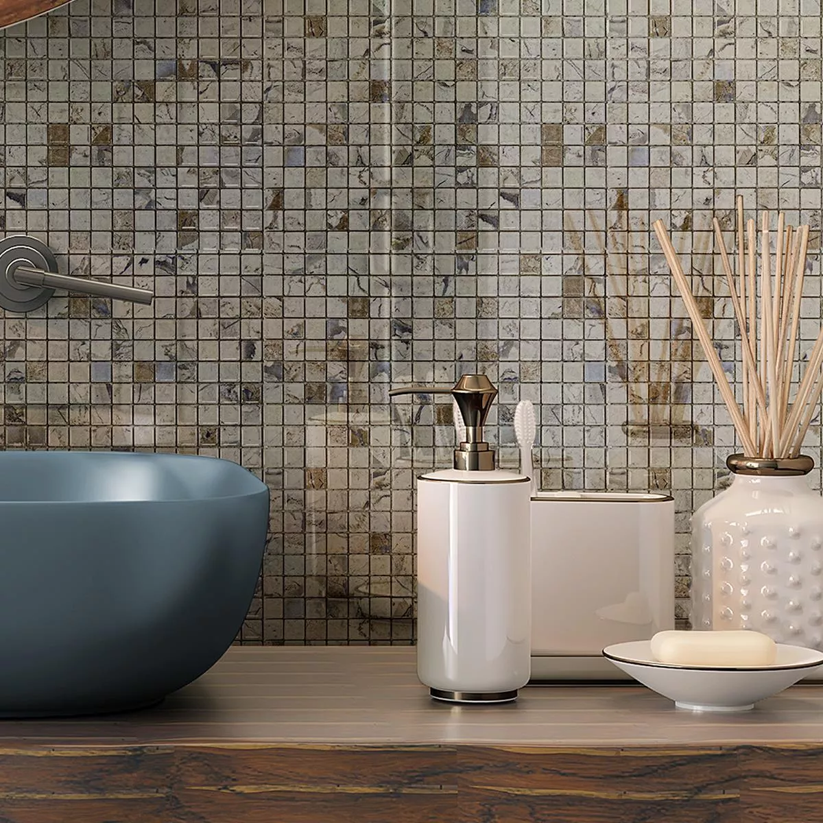 The Elysium mosaic tile in beige impresses with its stylish marble look and its high quality. One mat covers 0.099 m² and measures 31.5 x 31.5 cm. The small mosaic stones measuring 12 x 12 mm are glued to a net ready for installation, which enables easy and precise installation.