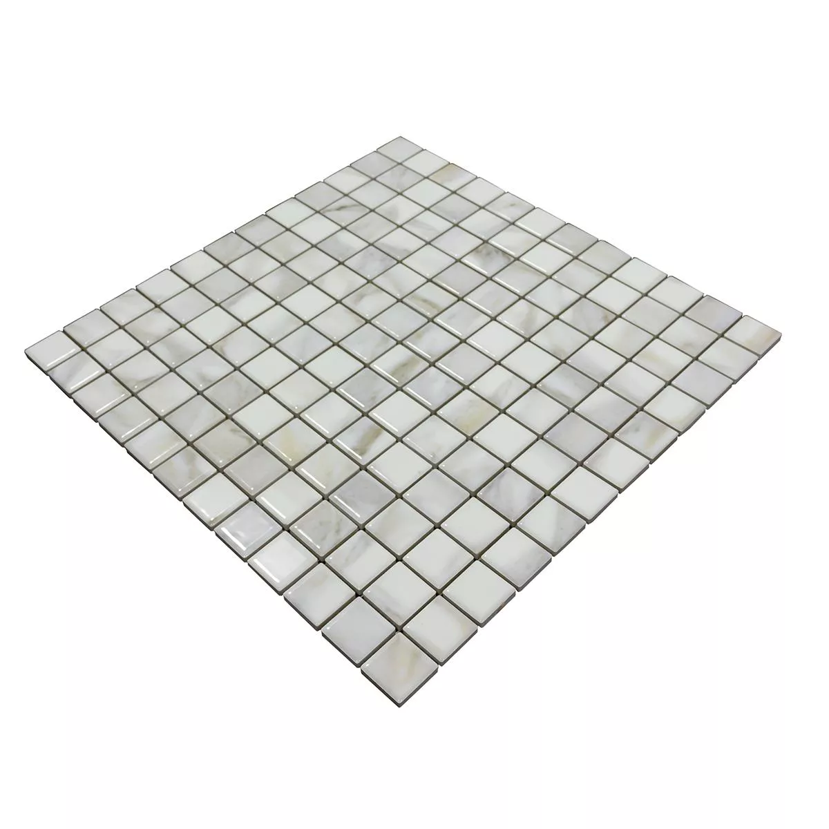 The Elysium mosaic tile in white combines functionality and aesthetic appeal in a special way. With a size of 29.7 x 29.7 cm per mat, each tile mat covers an area of 0.088 m². The individual mosaic stones measure 23 x 23 mm and are glued to a stable net ready for installation, which makes installation easier and saves time.