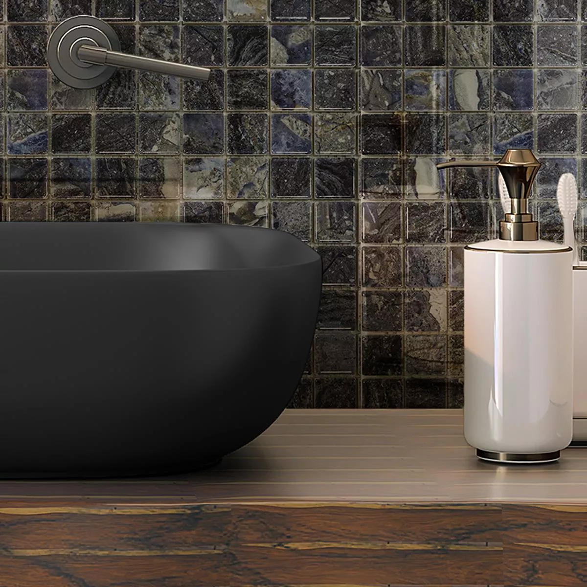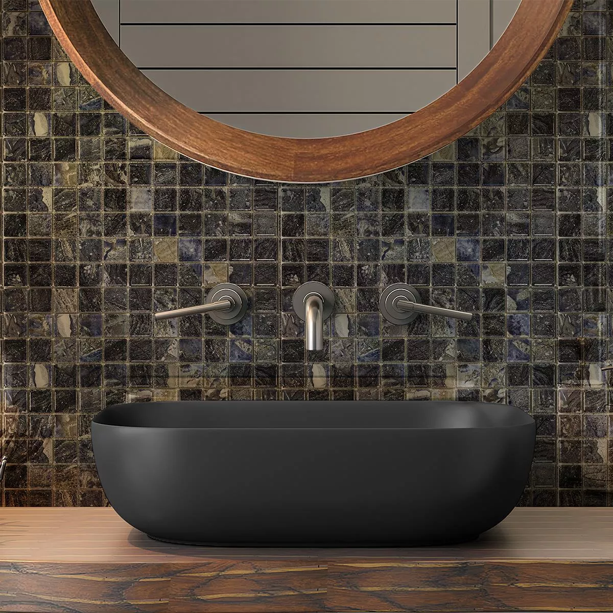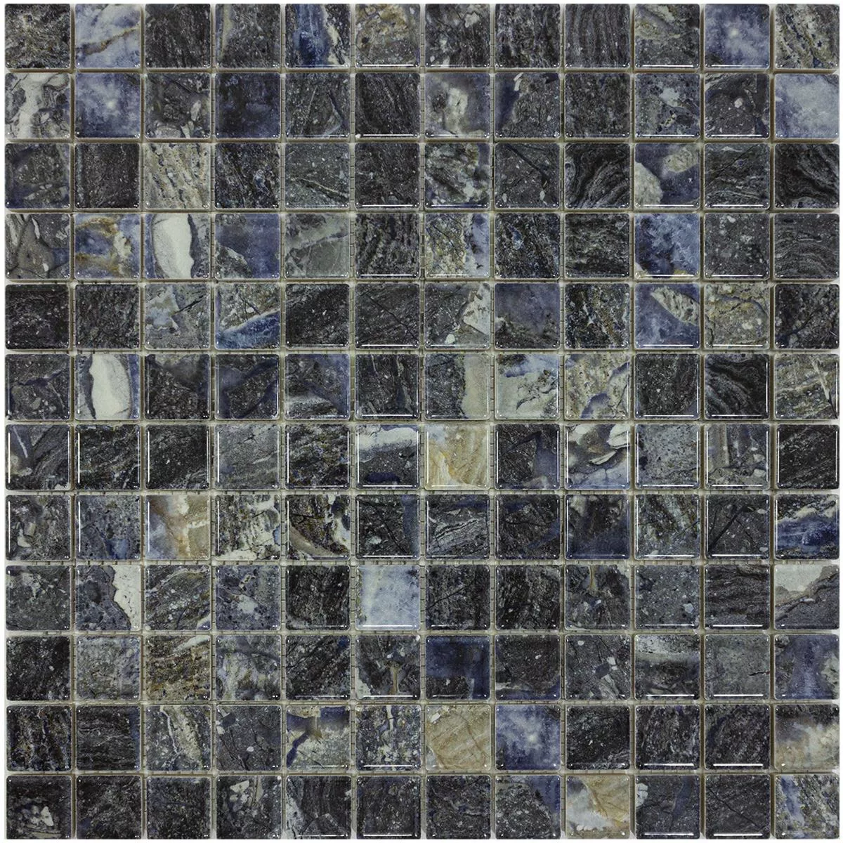 Give your room a luxurious touch with the elegant Elysium mosaic tile in dark blue . This high-quality tile offers an area of 0.088 m² on a mat and has the practical dimensions of 29.7 x 29.7 cm. The individual mosaic stones are 23 x 23 mm in size and are already glued to a net ready for laying, which makes installation much easier.
