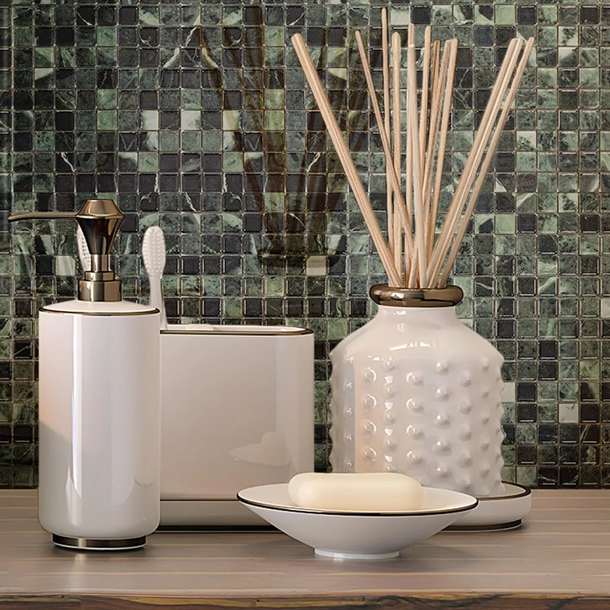 The Elysium ceramic mosaic tile in a stylish green brings a touch of elegance and freshness to your rooms. With its glossy surface in a noble marble look, it gives walls and floors a luxurious and modern flair.