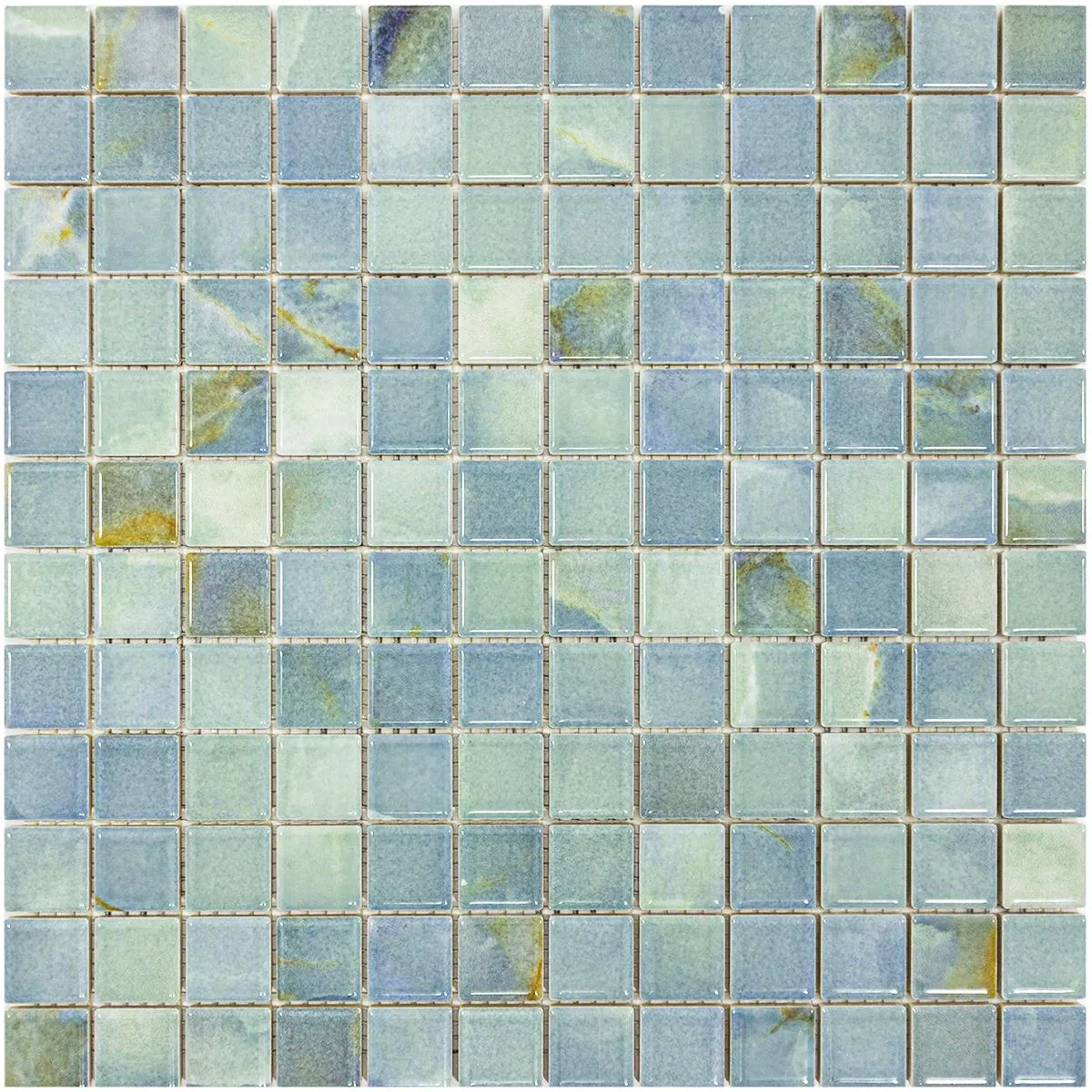 Elysium mosaic tile in sky blue offers a stylish and functional solution to your tiling needs. With an area of 0.088 m² per mat and a size of 29.7 x 29.7 cm, the tile blends harmoniously into any environment. The 23 x 23 mm mosaic stones are glued to a robust mesh ready for installation, making installation easy and efficient.
