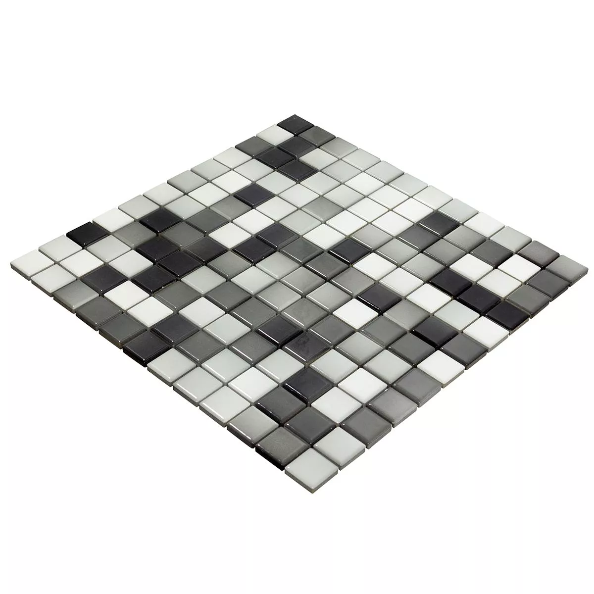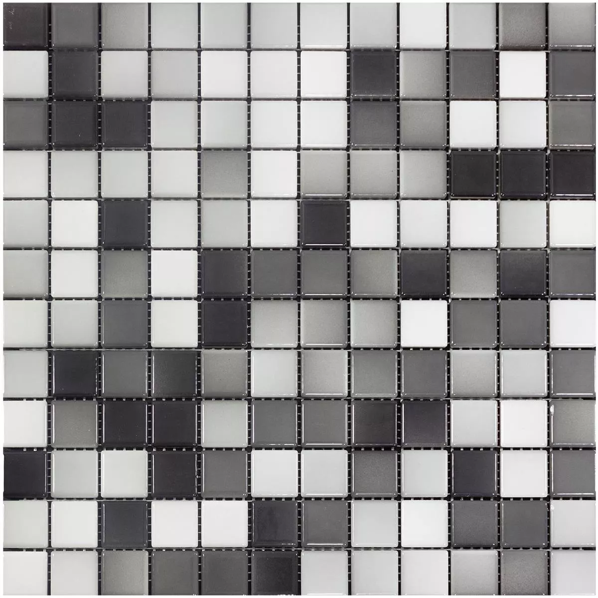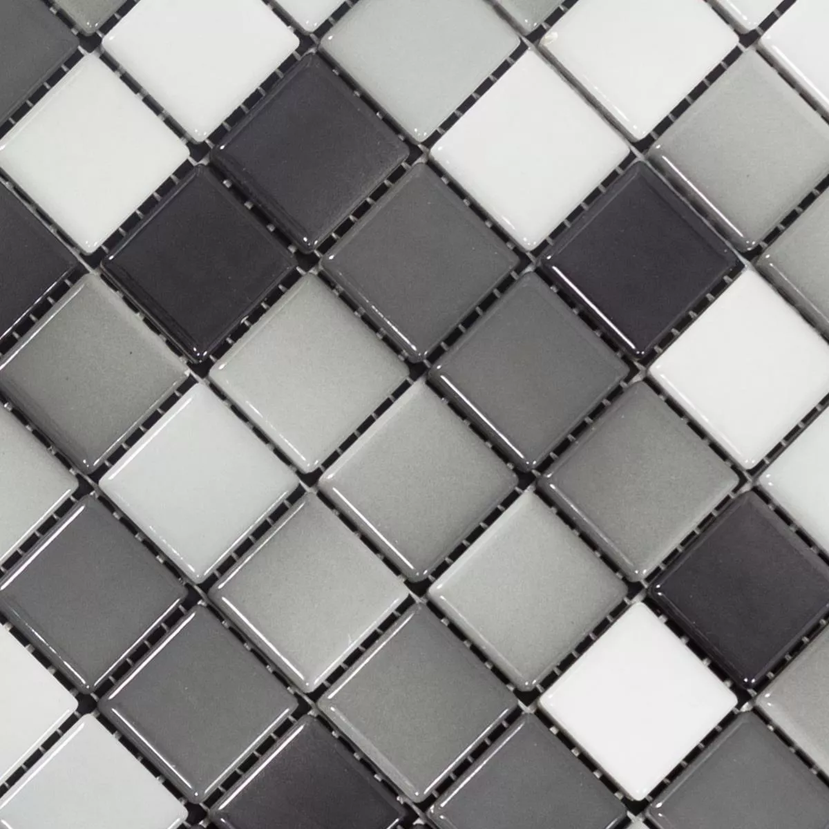 The Galleria ceramic mosaic tile in the stylish color combination of black, gray and white brings a contemporary touch to any room with its modern metallic look and matt surface. With the stone size of 23 x 23 mm and the tile mat of 29.7 x 29.7 cm, which is already glued to a net ready for installation, installation on both walls and floors is particularly simple and precise.