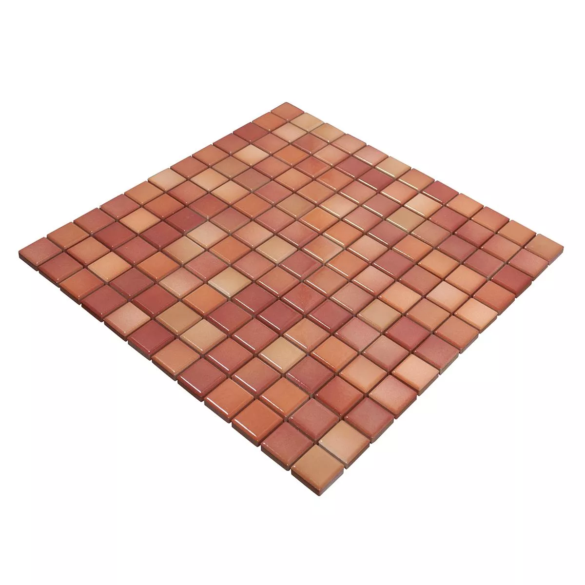 The Galleria ceramic mosaic tile in a vibrant red mix sets impressive accents with its striking metallic look and matte surface. The tile is available in a practical mat measuring 29.7 x 29.7 cm, which is already glued to a net ready for installation. With a stone size of 23 x 23 mm and a thickness of 6.5 mm, the tile can be installed easily and precisely on both walls and floors.