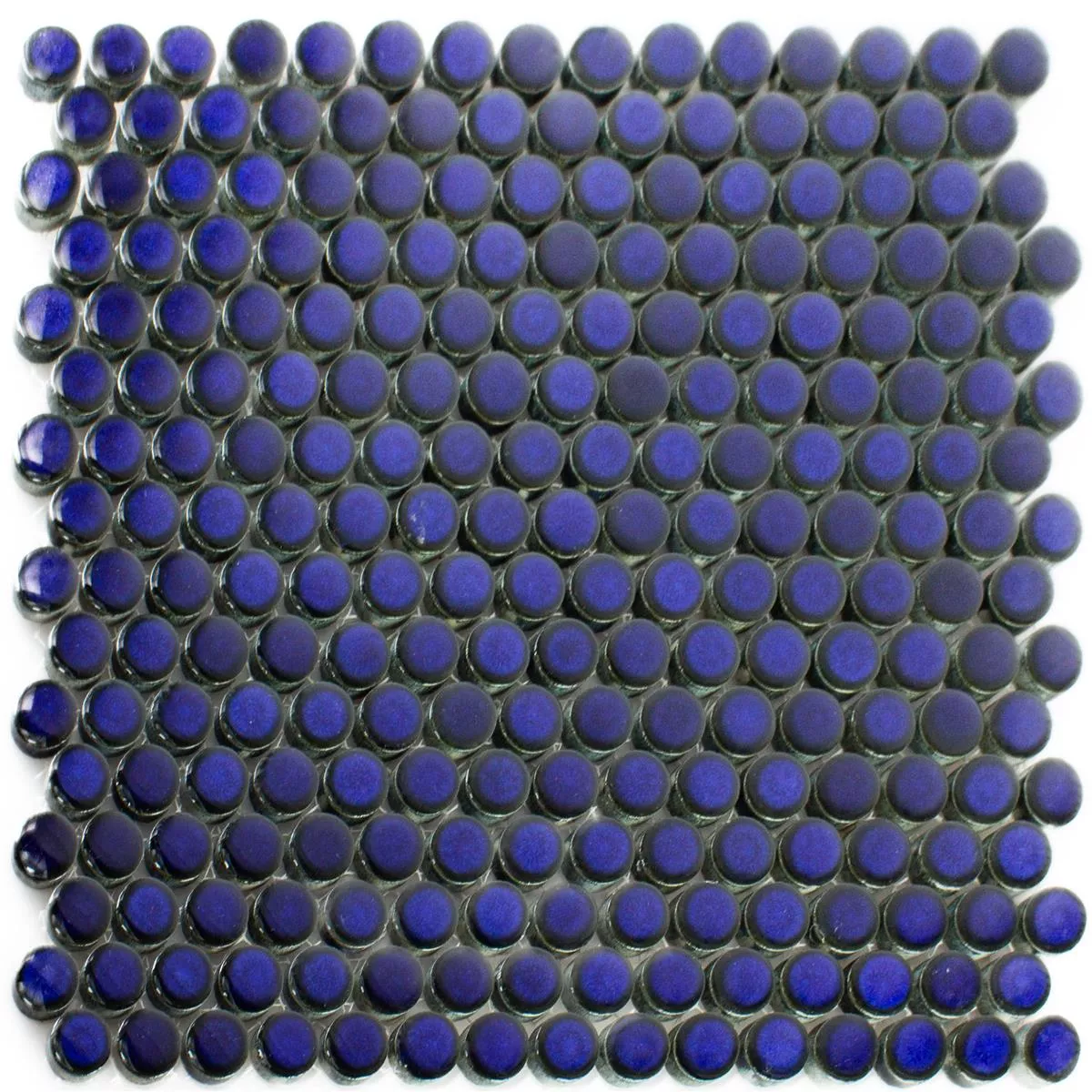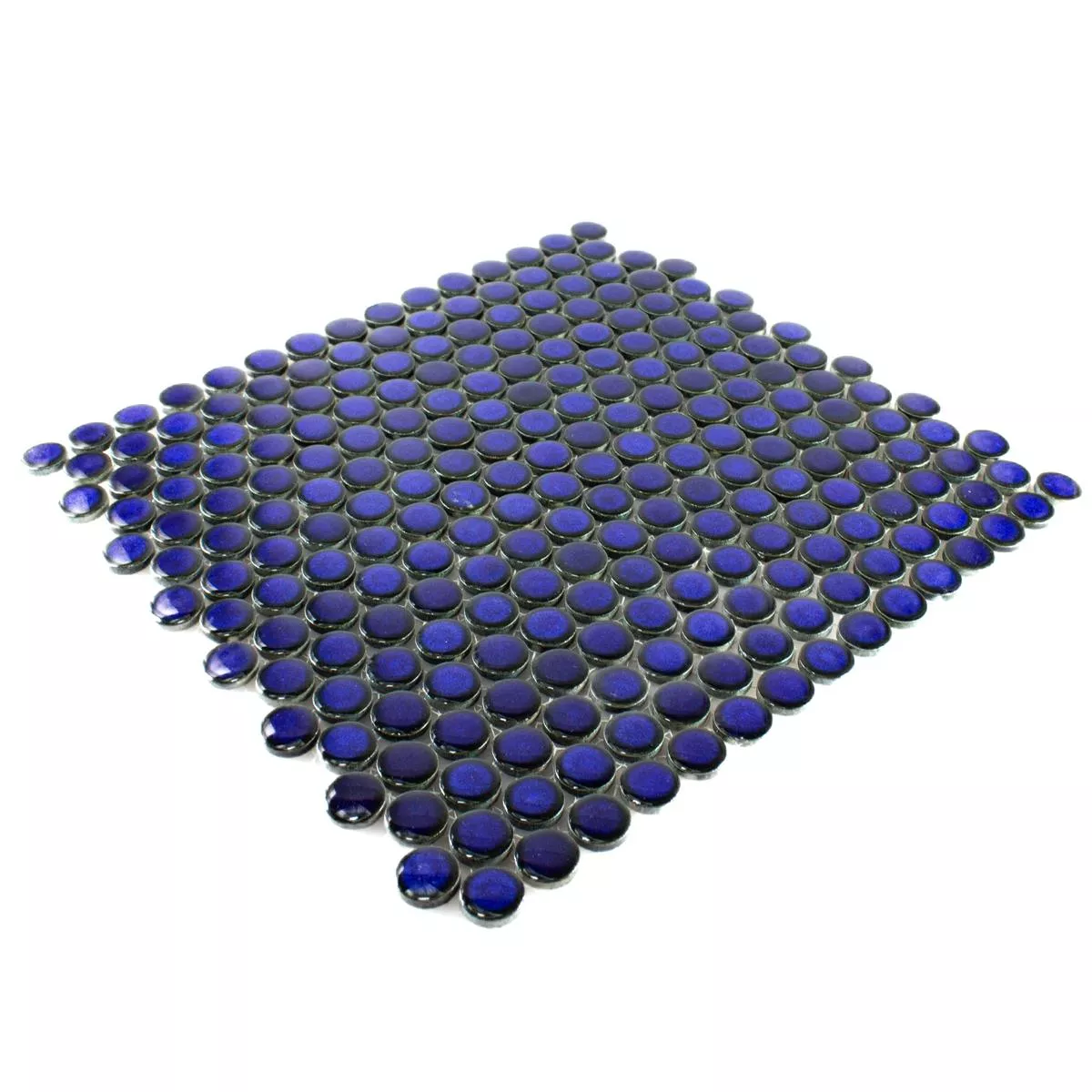 Ceramic Mosaic Tiles Joplin Button Round Blue