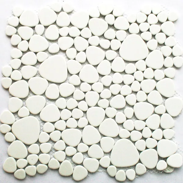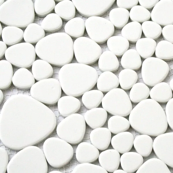 Ceramic Mosaic Tiles River Pebbles Optic Moorland Blanc Glossy