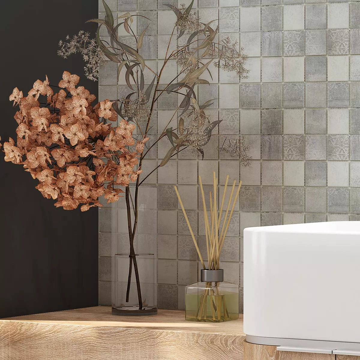 Each mat of 0.088m² contains 1 tile measuring 29.7x29.7cm and weighs 1.15 kg. With a joint width of 2mm and glued to a net ready for installation, they ensure quick and easy installation. Bring stylish accents to your home with the Sorrento Gray mosaic tiles in the subtle color gray. Made in Germany, they guarantee the highest quality and durability.