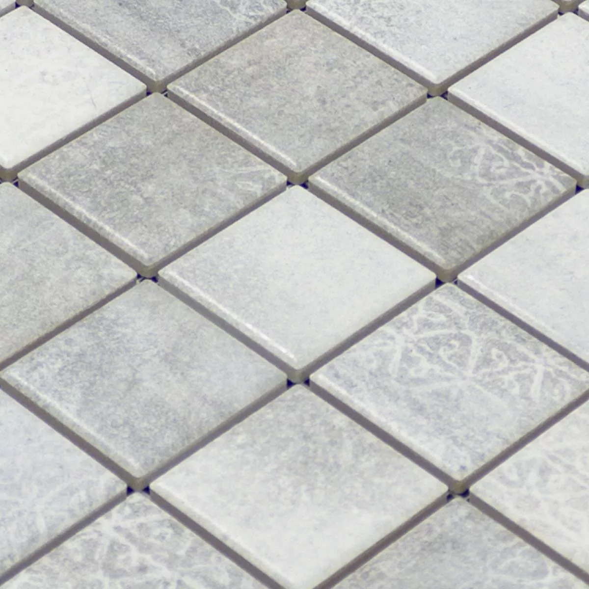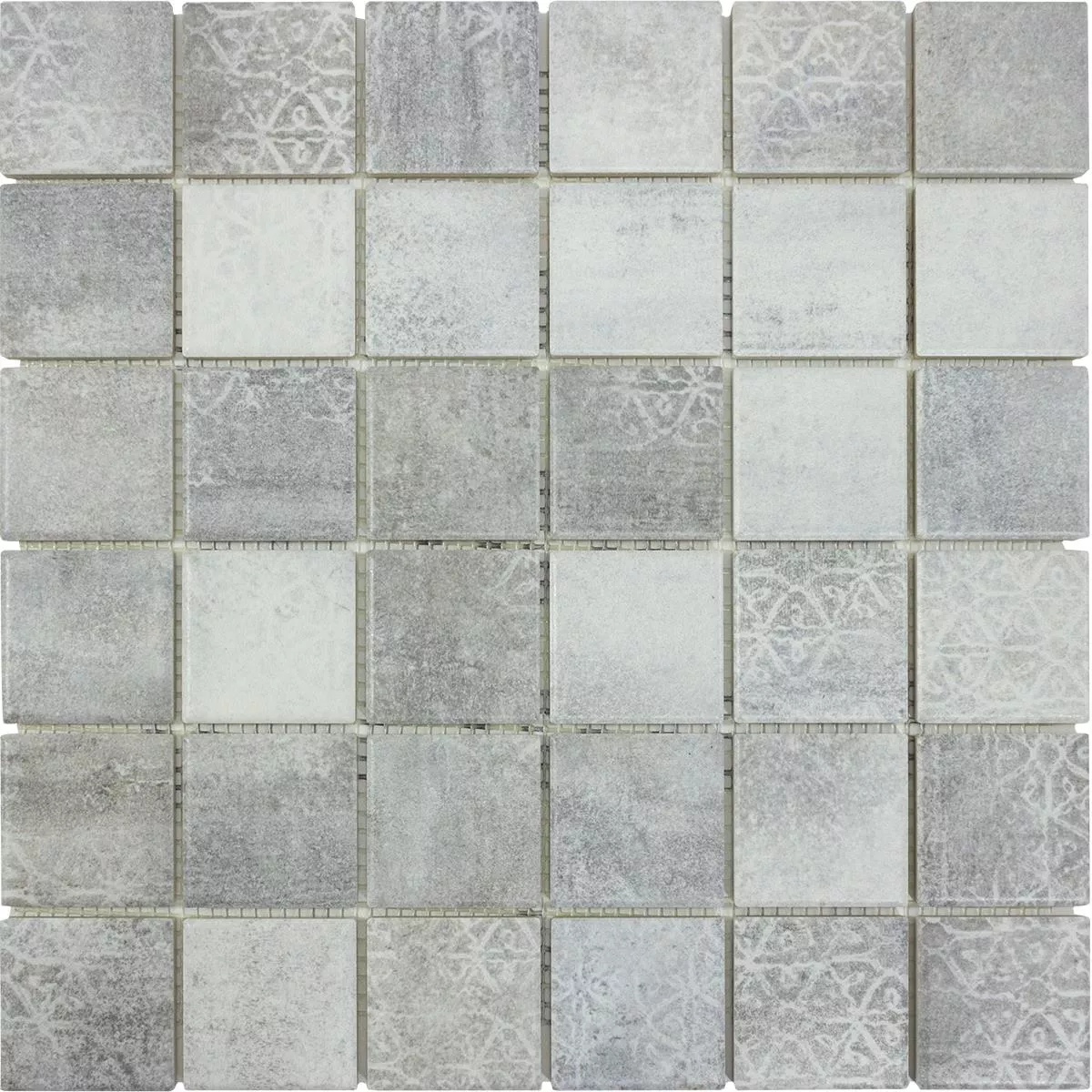 The Sorrento Grey ceramic mosaic tiles are ideal for indoor and outdoor areas. These frost-resistant, square tiles in stone size 47x47mm and a thickness of 6.5mm offer a matt surface with a retro look. Perfect for living rooms, kitchens, bathrooms and showers, they are suitable as both wall and floor tiles.