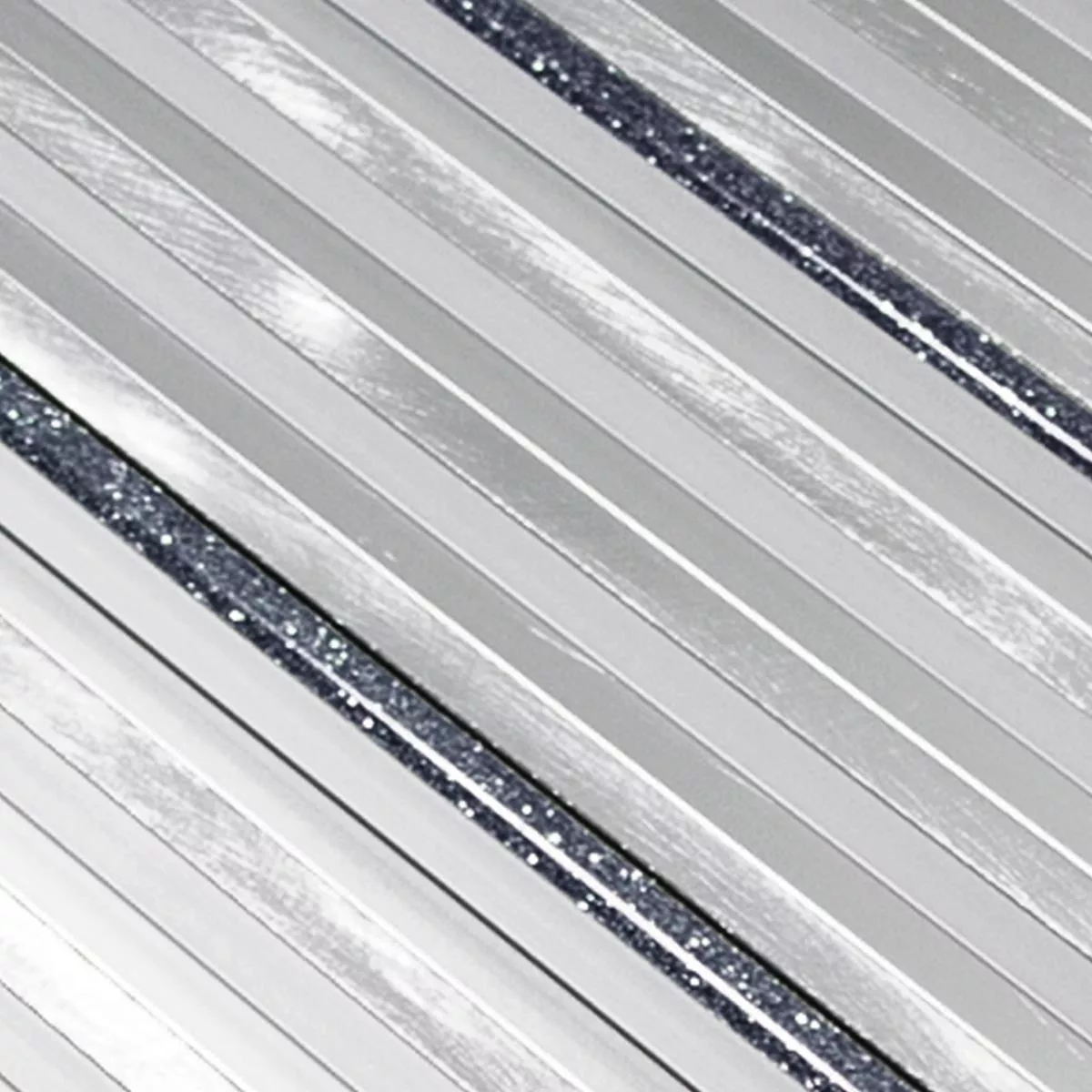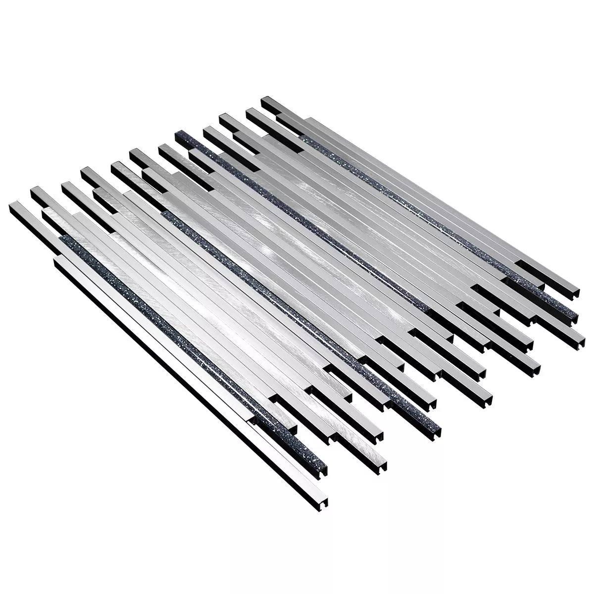 Los mosaicos metálicos de aluminio Bilbao en formato barra le dan a tu interior un elegante aspecto metálico en negro y plata. La superficie cepillada y mate subraya el aspecto contemporáneo. Con un espesor de 8mm, ofrecen robustez y longevidad.
