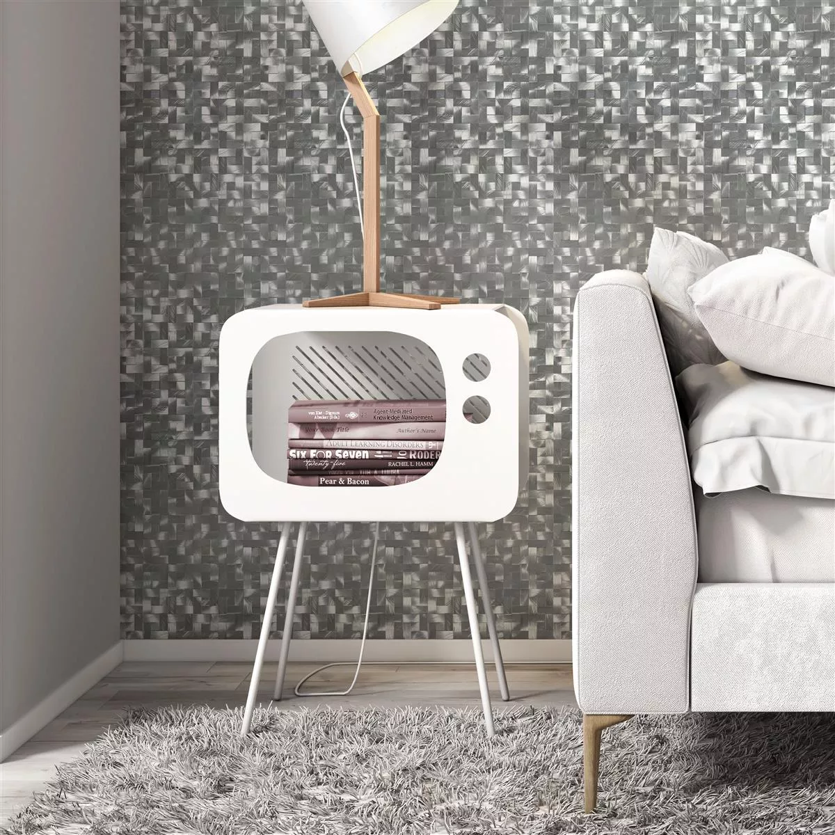 Los mosaicos Quantum Silver son ideales para su uso en la cocina, el salón y el baño. Tenga en cuenta que no se recomiendan para zonas húmedas.