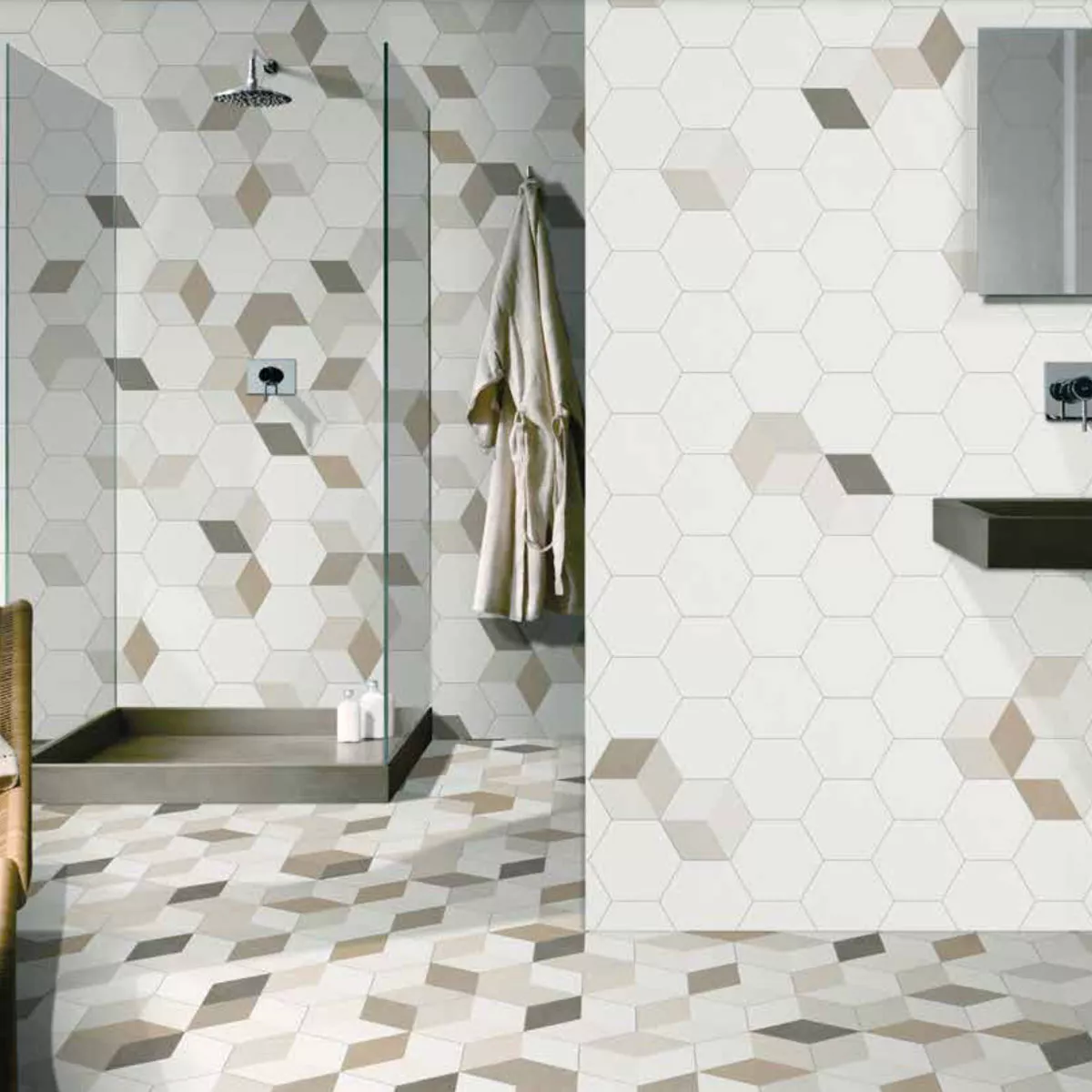 Descubra el impresionante gres porcelánico Novalima Hexagon, que impresiona por su fascinante aspecto de cubo 3D. Estos excepcionales azulejos aportan a cualquier estancia una estética única y moderna que llama inmediatamente la atención.