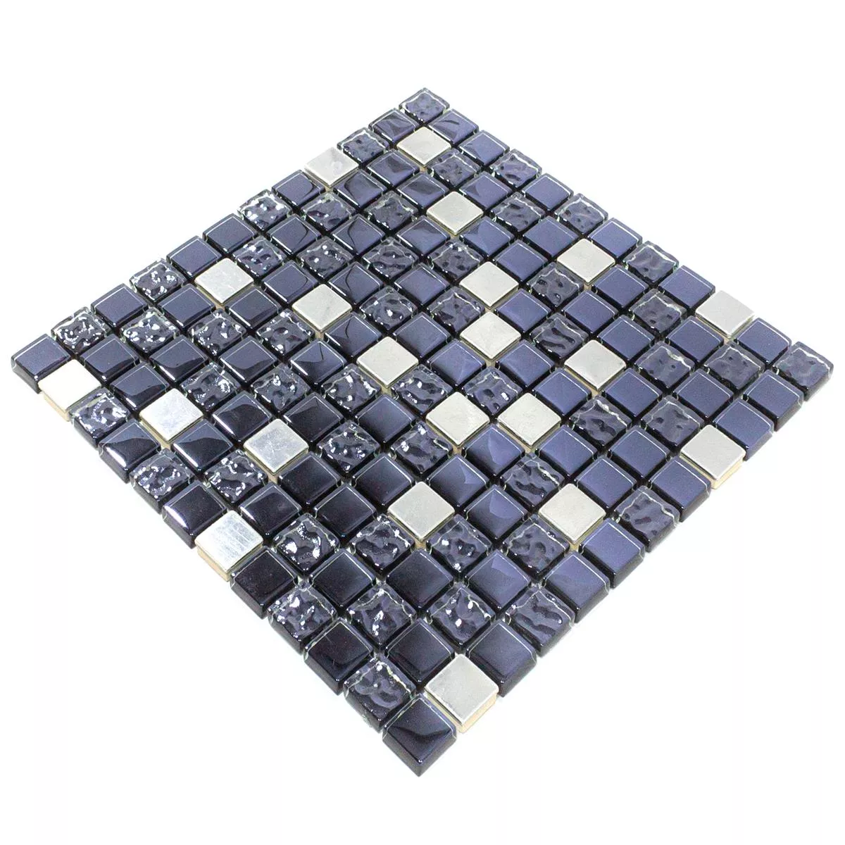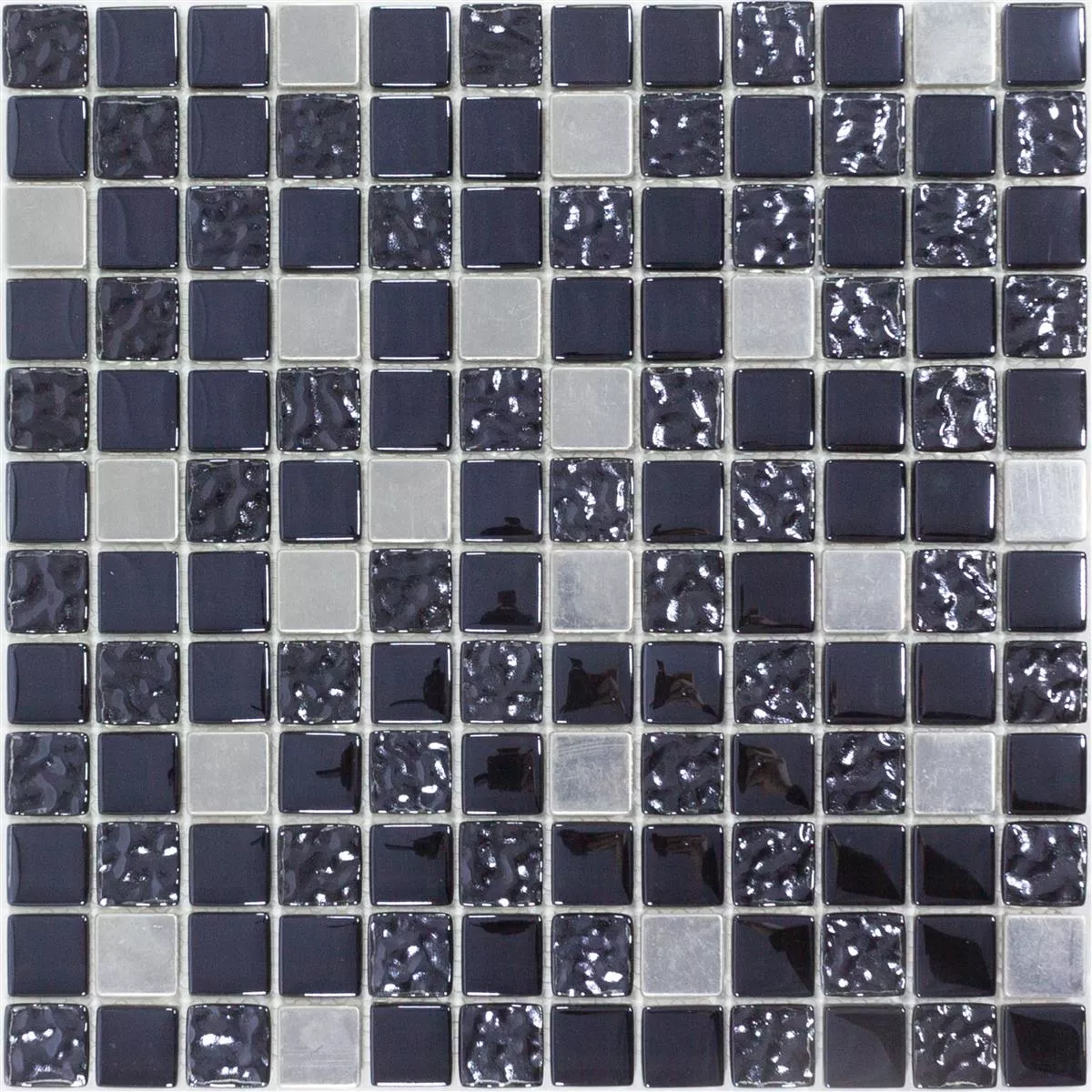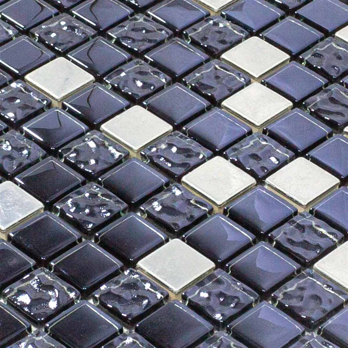 Azulejos De Mosaico Cristal Acero Inoxidable Blackriver Negro Plateado Mix
