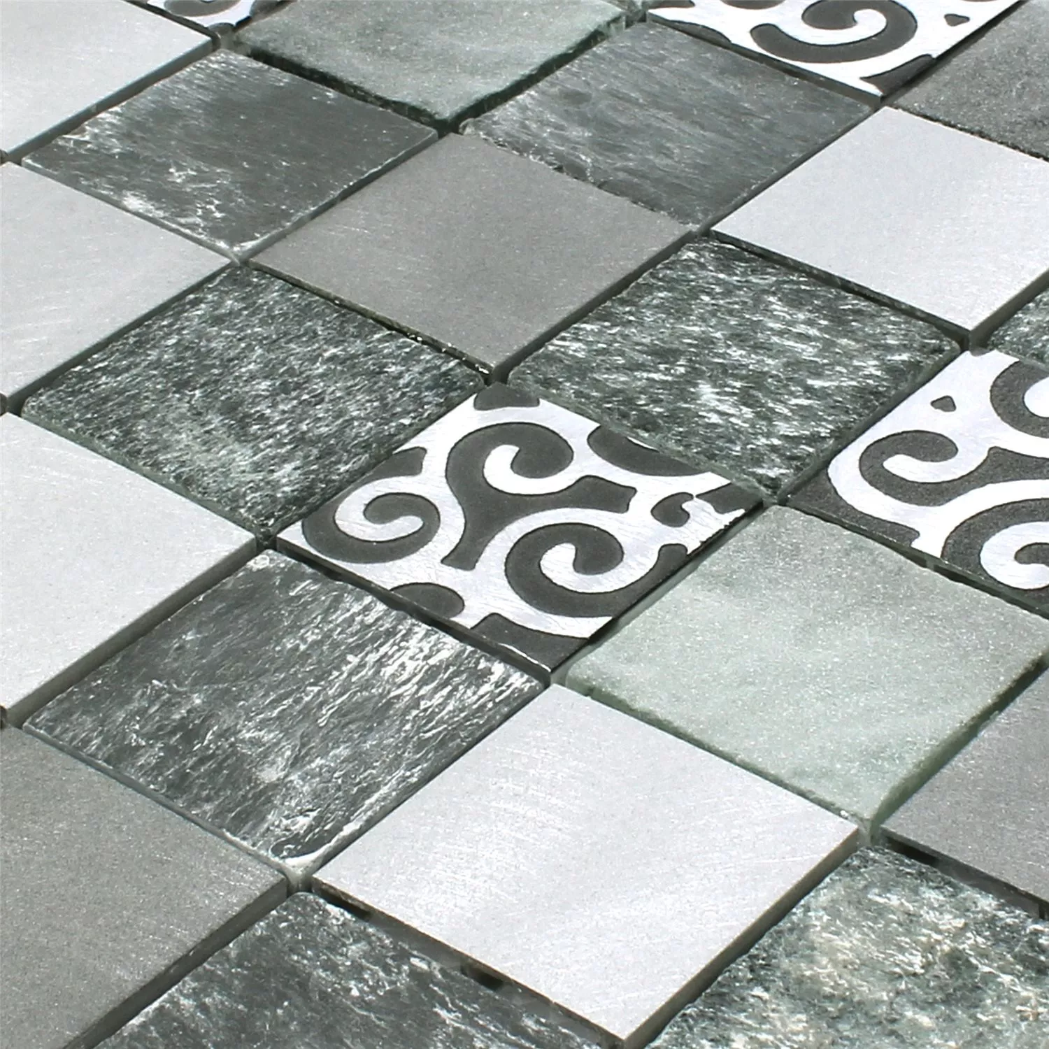 Azulejos De Mosaico Cristal Piedra Natural Auminio Valdivia Gris