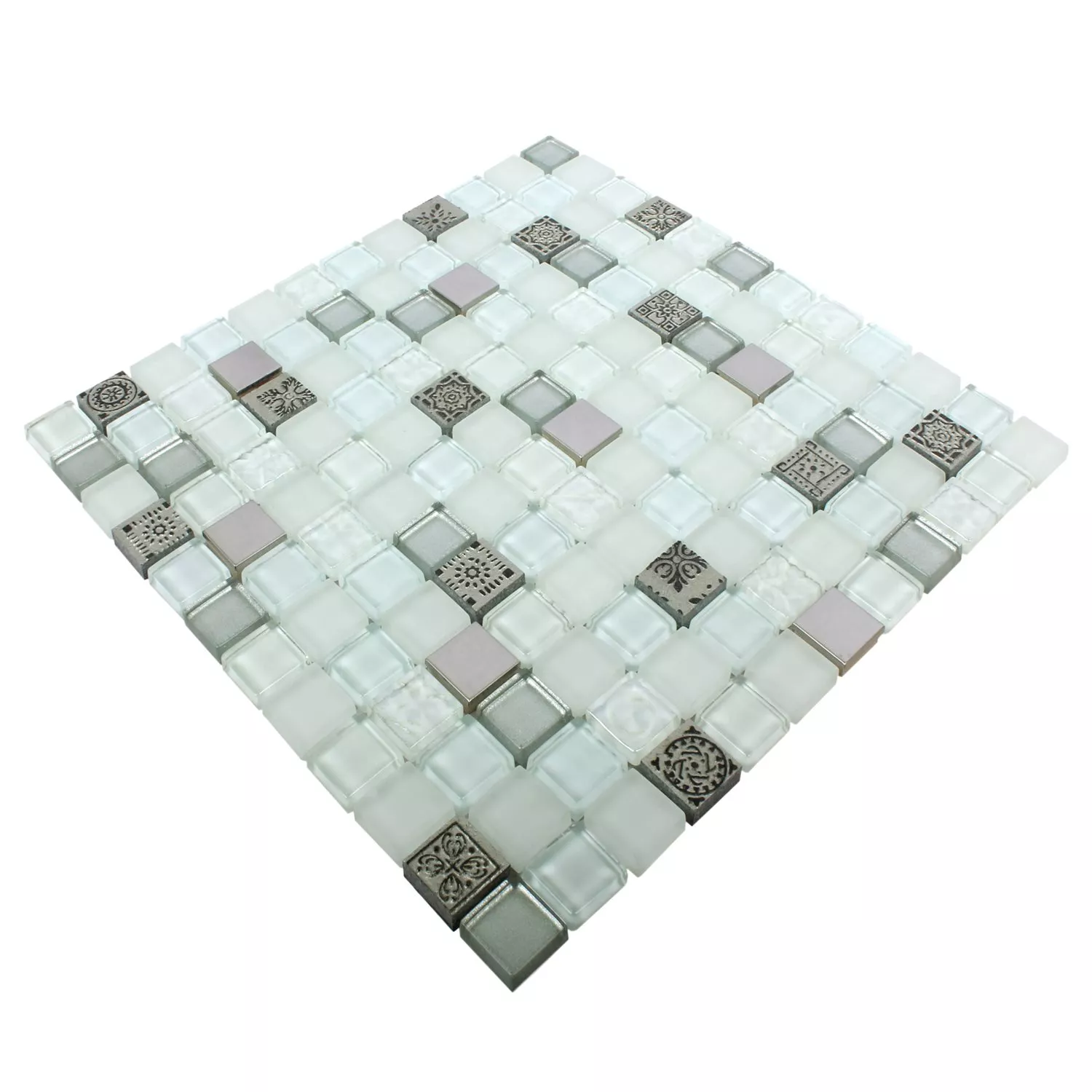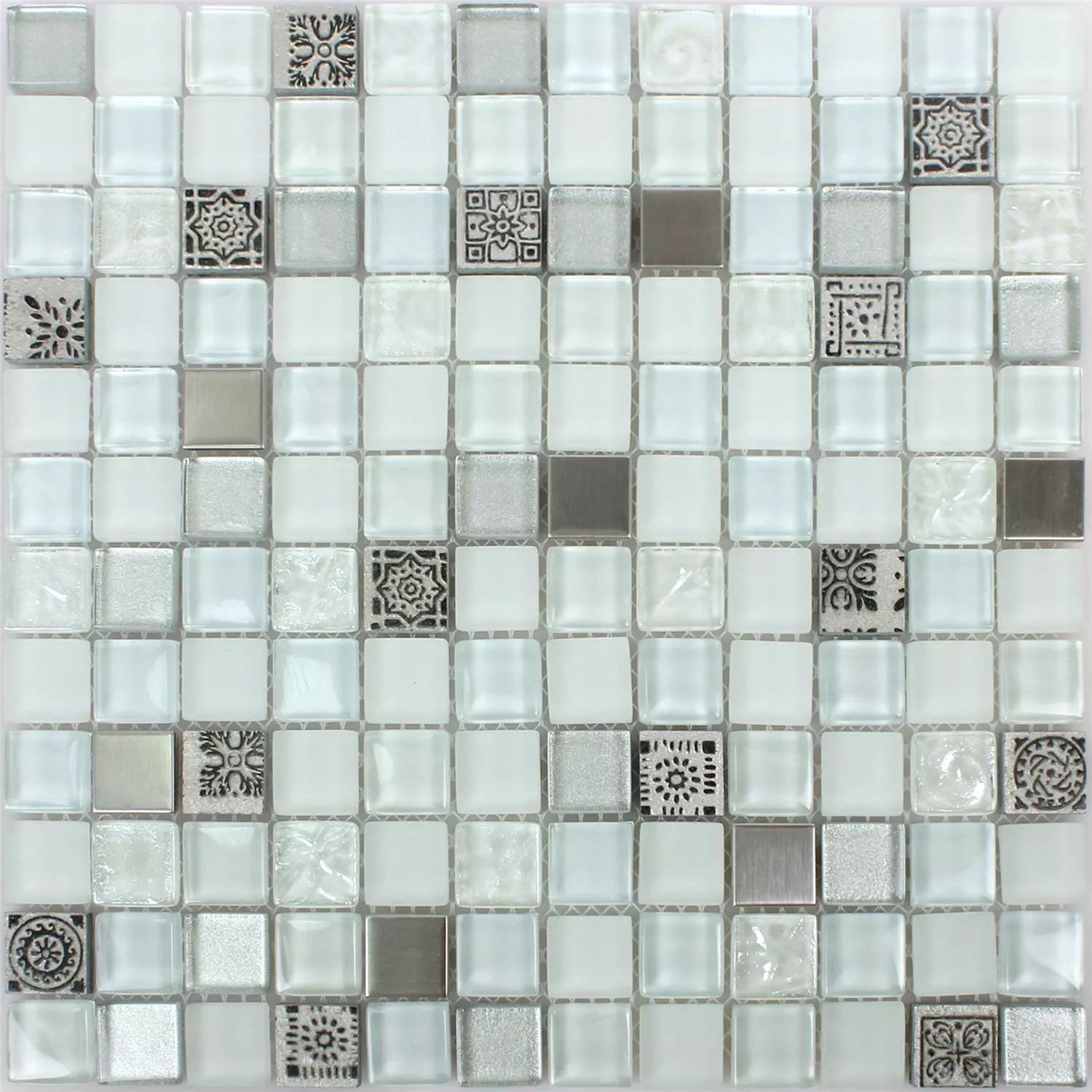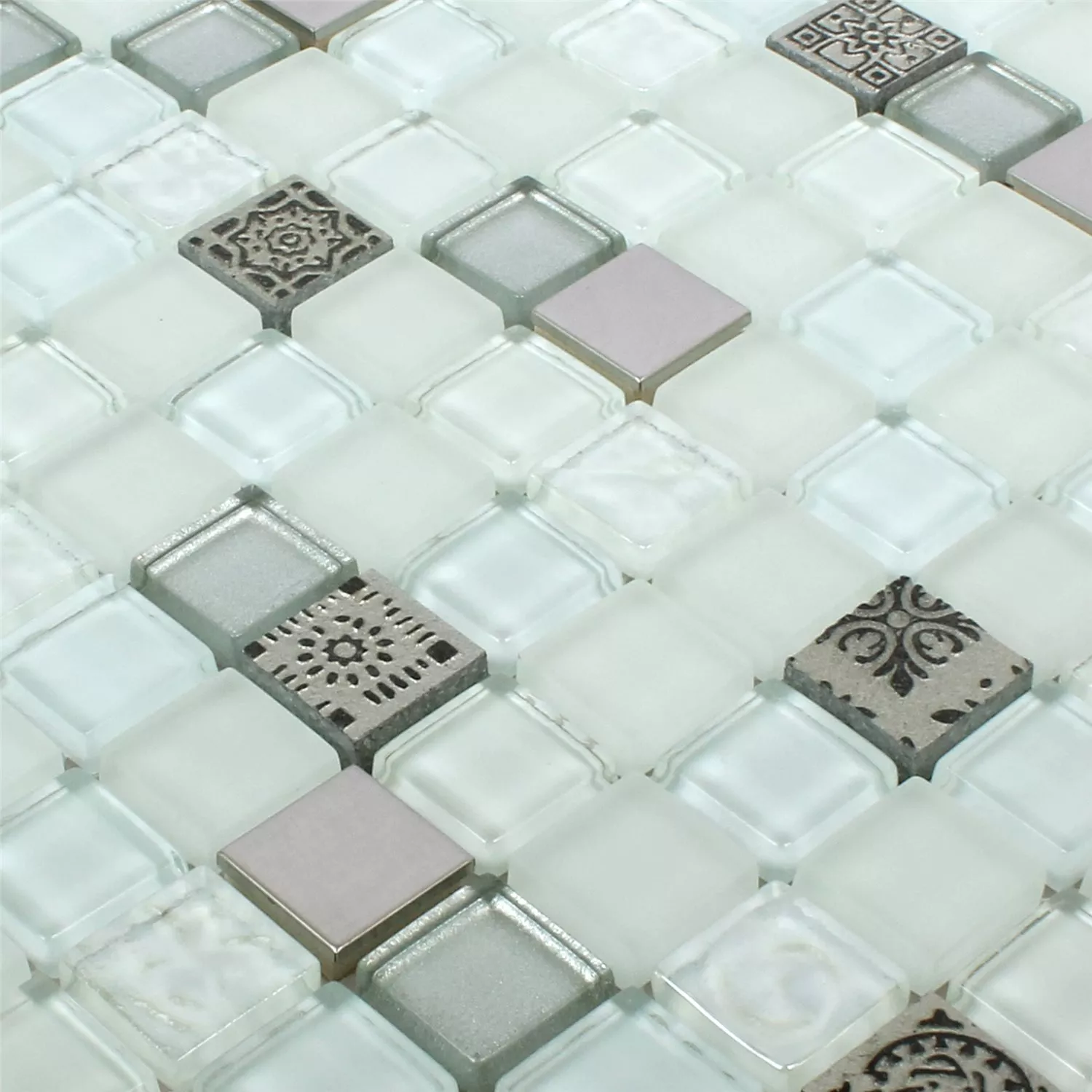Azulejos De Mosaico Cristal Resina Acero Inoxidable Mezcla Gramos Blanco