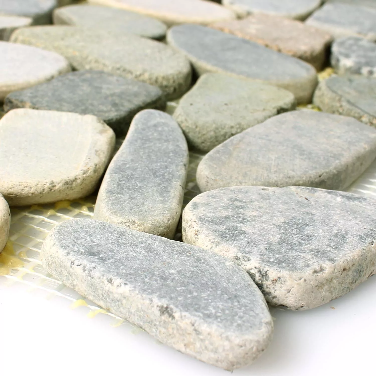 Encontrar los mosaicos perfectos ahora es más fácil que nunca. Aquí ya puedes encontrar mosaicos que lo tienen todo. Los azulejos están hechos de piedras naturales reales y guijarros de río para ser precisos. Con estas baldosas no se puede decir con certeza que una estera sea igual a la otra. Cada azulejo de pared individual es único y debe tratarse en consecuencia. En última instancia, sin embargo, es la superficie la que se ve uniforme e individual al mismo tiempo con los mosaicos.