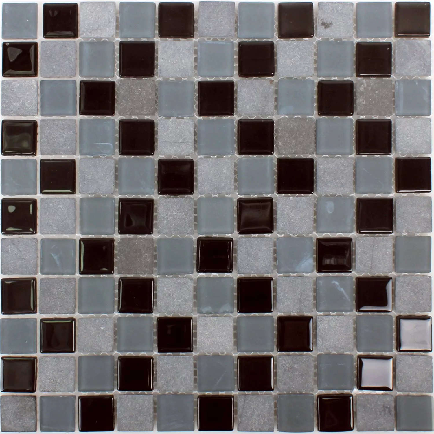 Azulejos De Mosaico Mármol Cristal Mezcla Kobra Negro Gris 25