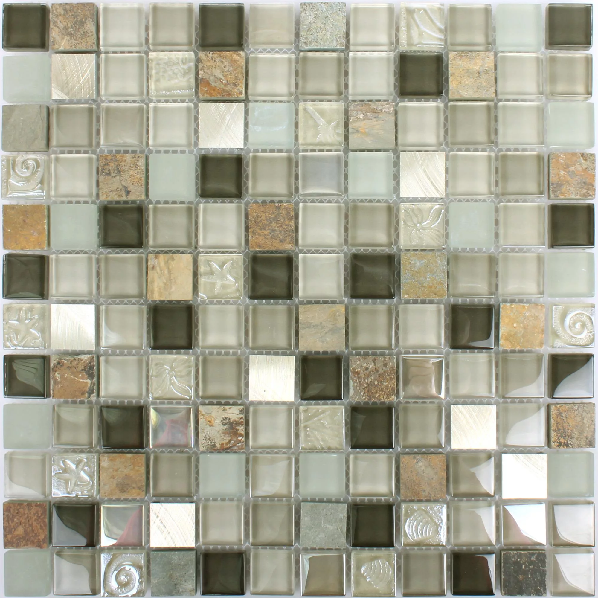 Azulejos De Mosaico Piedra Natural Cristal Metal Mezcla Lockhart