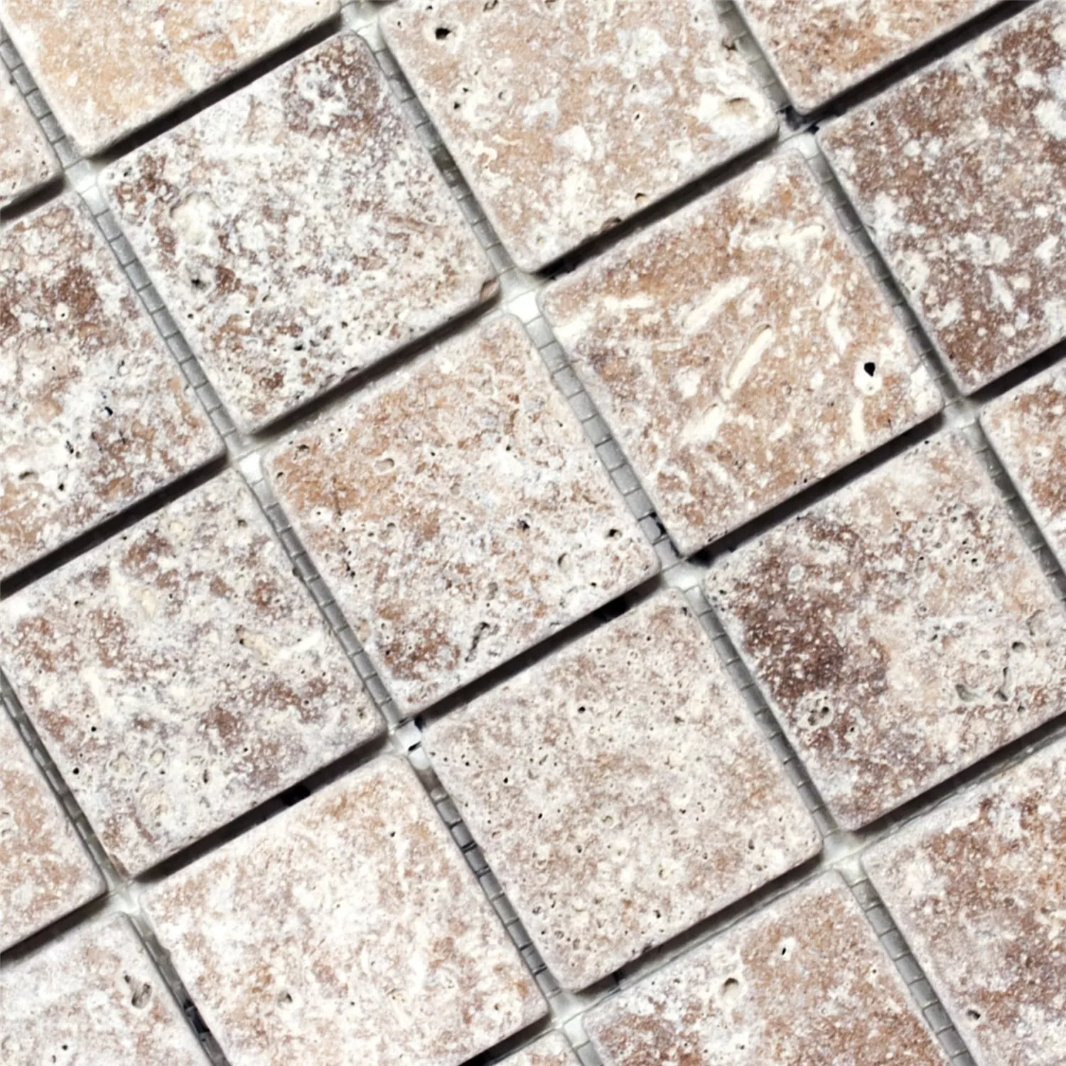 Los mosaicos de travertino Patara Noce 48 están hechos de roca sedimentaria terrestre, formada por un proceso de precipitación rápida de carbonato de calcio en la desembocadura de fuentes termales o en cuevas de piedra caliza. El travertino Patara Noce a menudo tiene una apariencia fibrosa o concentrada y viene en variedades blancas, marrones, crema y oxidadas. Estos azulejos de piedra natural aportan una calidez única a cocinas, salones y baños. El travertino se usa comúnmente en las casas modernas como un material de construcción natural y fuerte.