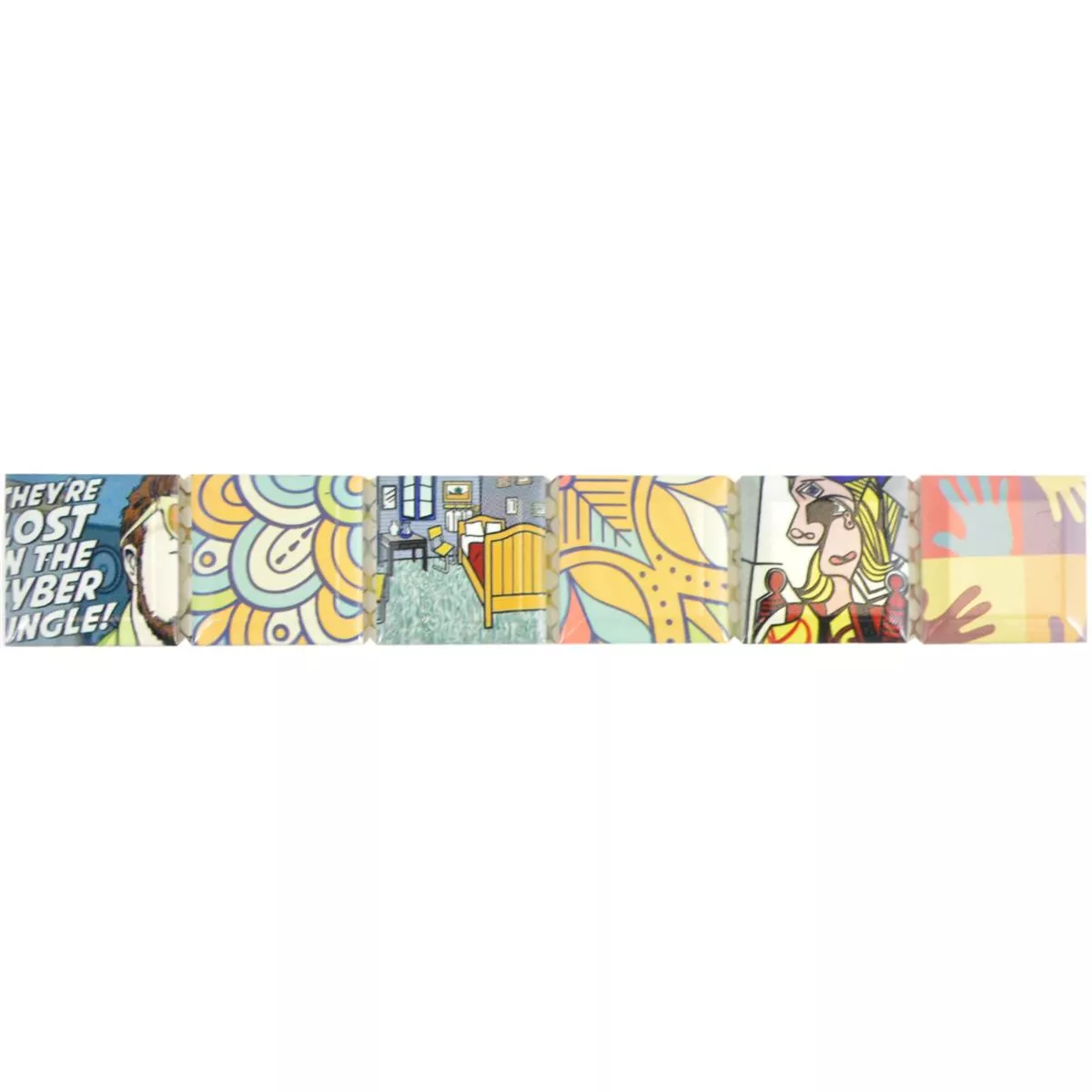 El colorido borde de azulejos de cerámica de Roxbury aporta un animado encanto retro y vintage a sus habitaciones. Este borde de azulejos se caracteriza por su combinación de colores coloridos y su superficie brillante y esmaltada, que es estéticamente agradable y fácil de limpiar.