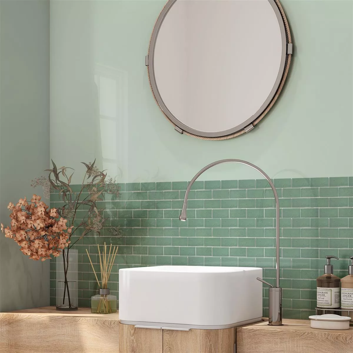 El mosaico cerámico "Eldertown Brick Dark Green" realzará su interior con un toque de elegancia y color. La superficie brillante confiere a estos mosaicos y revestimientos rectangulares un aspecto atractivo. En una superficie de 0,092 m², los azulejos son fáciles de manipular y son ideales para el salón, la cocina y la ducha.