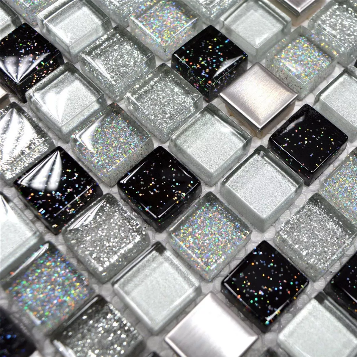 Cristal Acero Inoxidable Metal Azulejos De Mosaico Plateado Negro