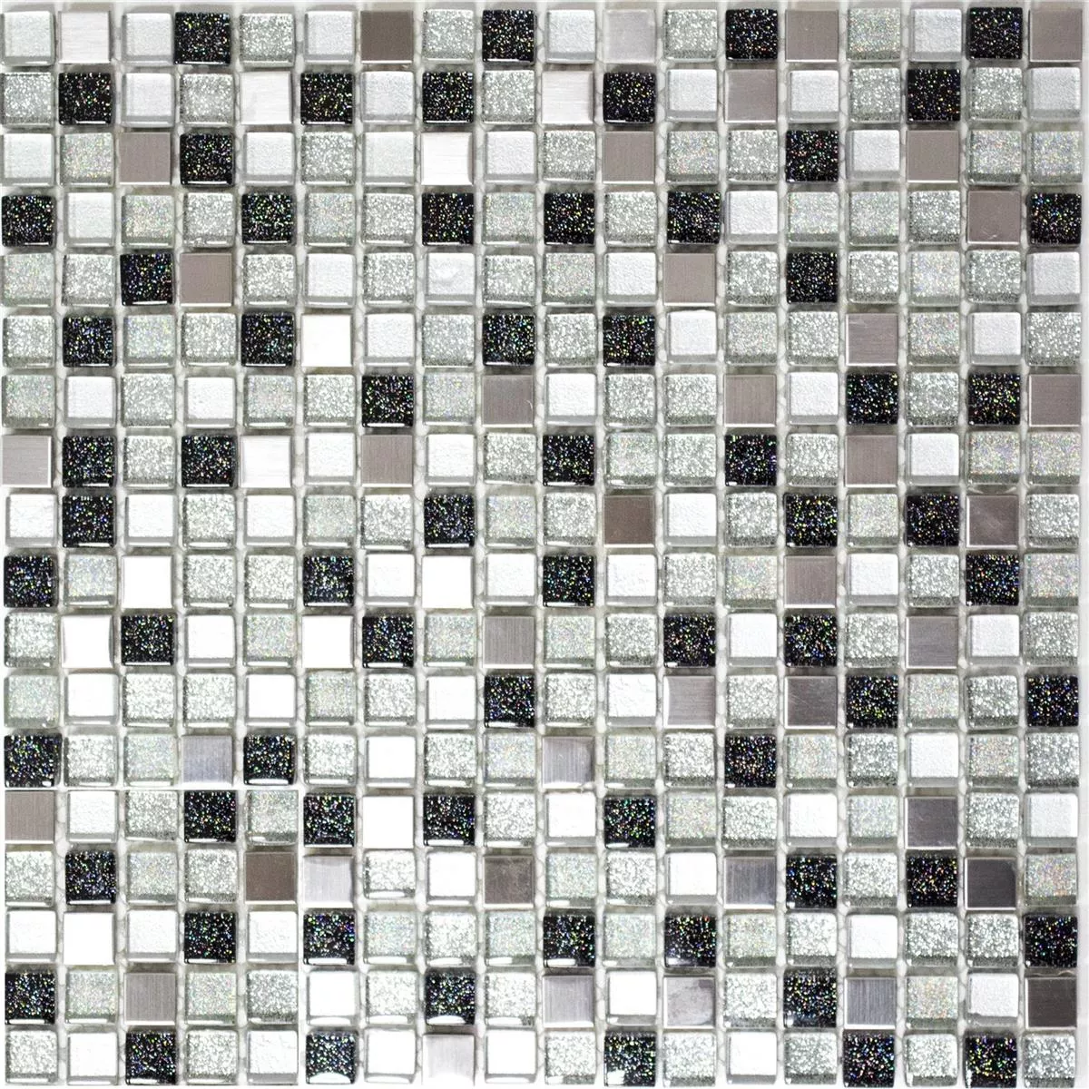 ¡Estos mosaicos son definitivamente algo muy especial! Con estos azulejos puedes marcar un verdadero punto culminante para la cocina. Los azulejos de cocina Sokrates se componen de dos materiales diferentes. Estos materiales son el vidrio y el metal. Por lo tanto, la serie de mosaicos Socrates también es ideal para la cocina, por ejemplo, para su uso como salpicadero de cocina. Los azulejos de cocina combinados de cristal y acero inoxidable son espectaculares, su superficie es brillante y cepillada. Con un grosor de 8 mm, son fáciles de colocar y muy elegantes en el área de la cocina. La dimensión mate de estos azulejos de cocina de metal y vidrio con purpurina Sokrates es de 30,5 x 32,2 cm. En contraste con el color y el diseño de la superficie, las piedras individuales parecen bastante tranquilas en su forma, ya que son cuadradas. Esto da una gran imagen general. En consecuencia, las piedras tienen un tamaño de 15x15 mm. La forma cuadrada de los mosaicos brillantes de Sokrates es particularmente adecuada para un salpicadero de cocina moderno.