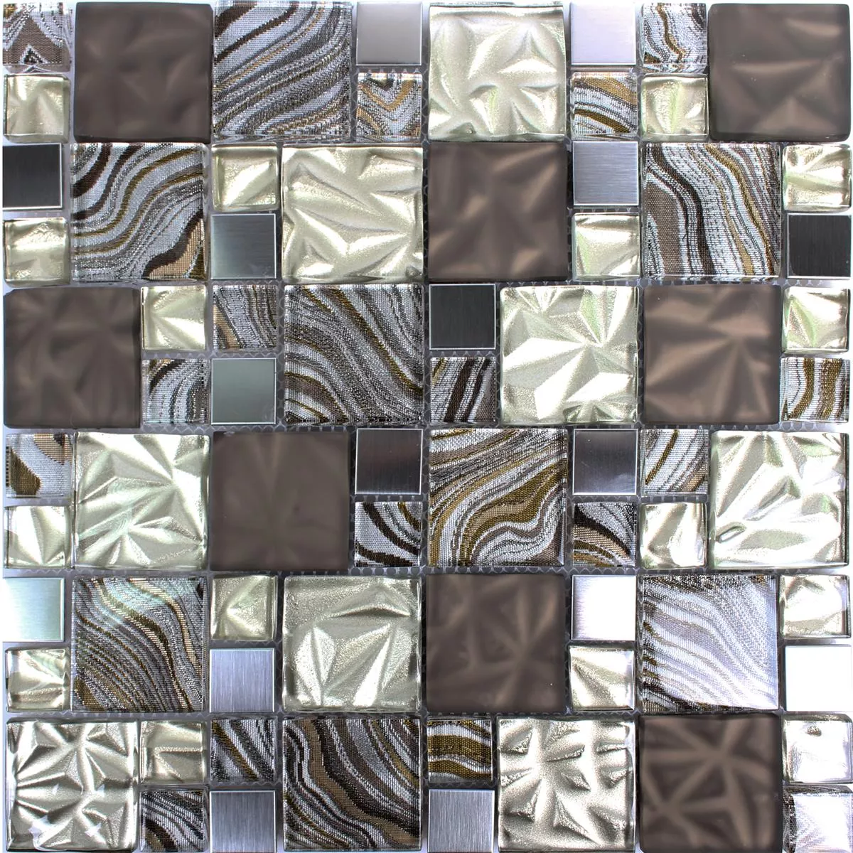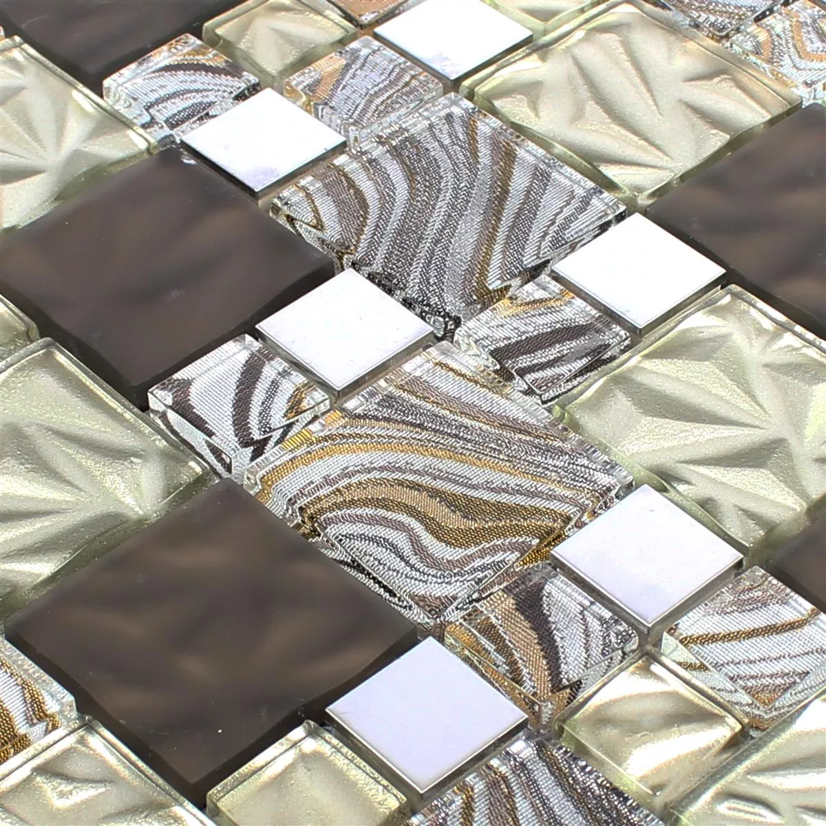 Cristal Metal Acero Inoxidable Mosaico Zadar Beige Marrón