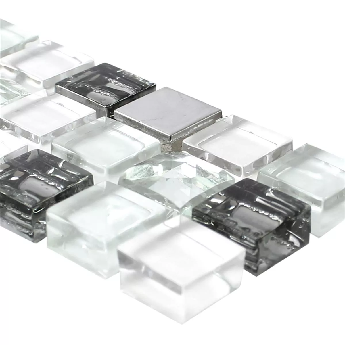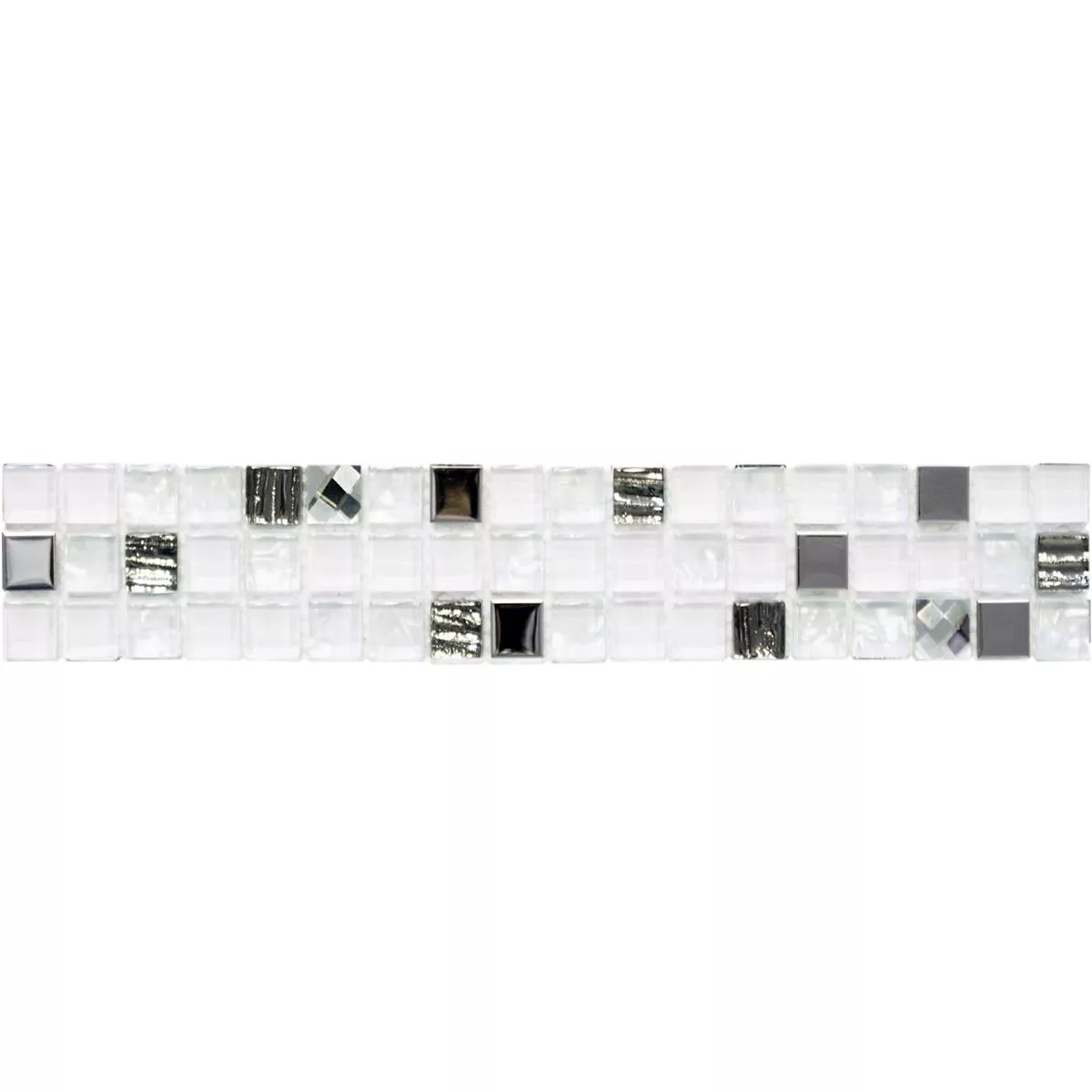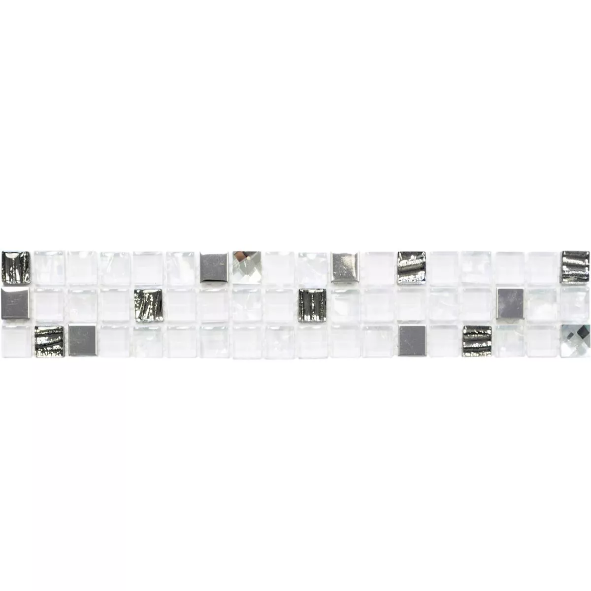 Cristal Metal Mosaico Borde Fresno Blanco Plateado