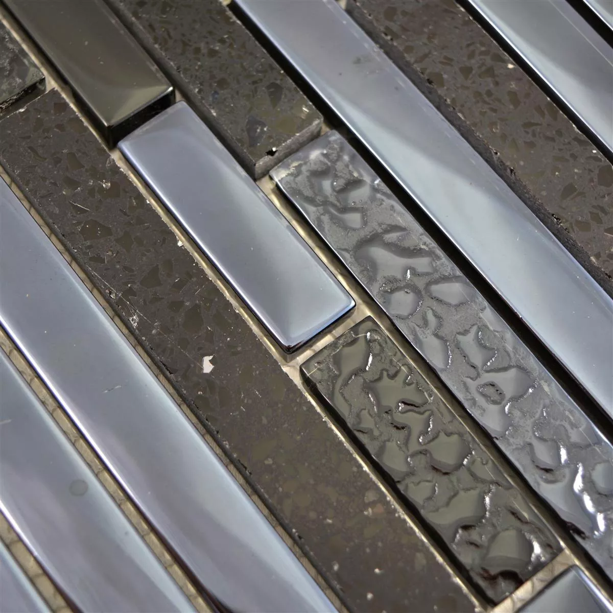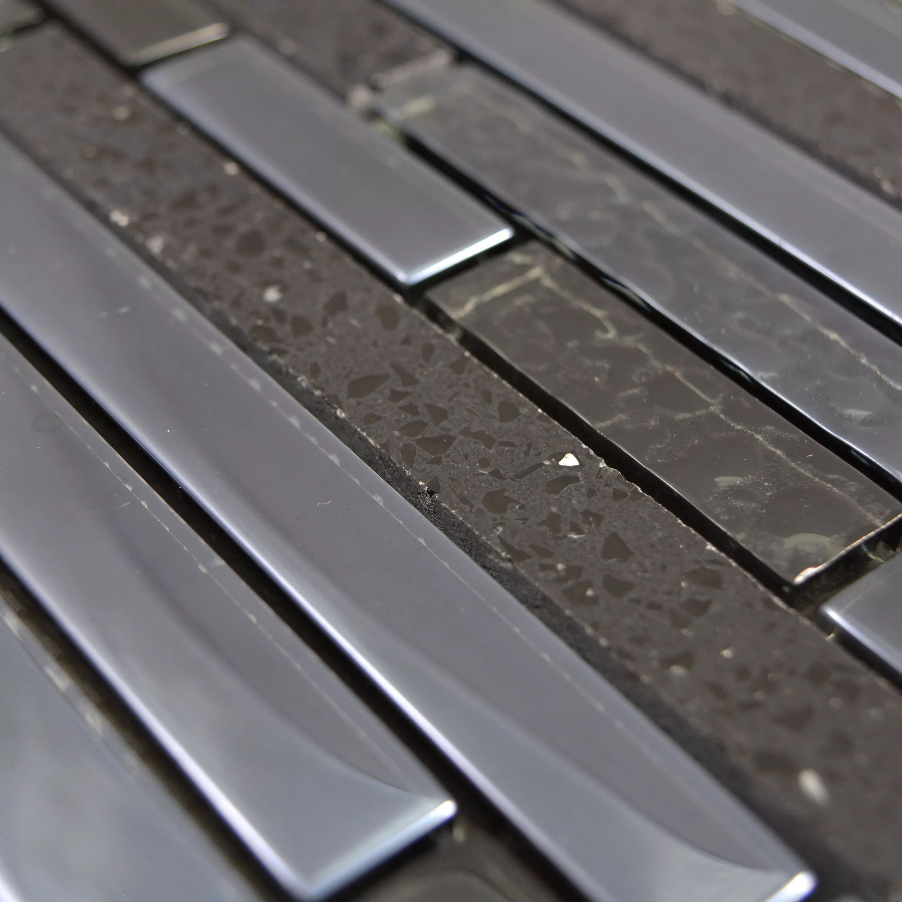 Cristal Piedra Acero Inoxidable Mosaico Wilmont Negro Plateado