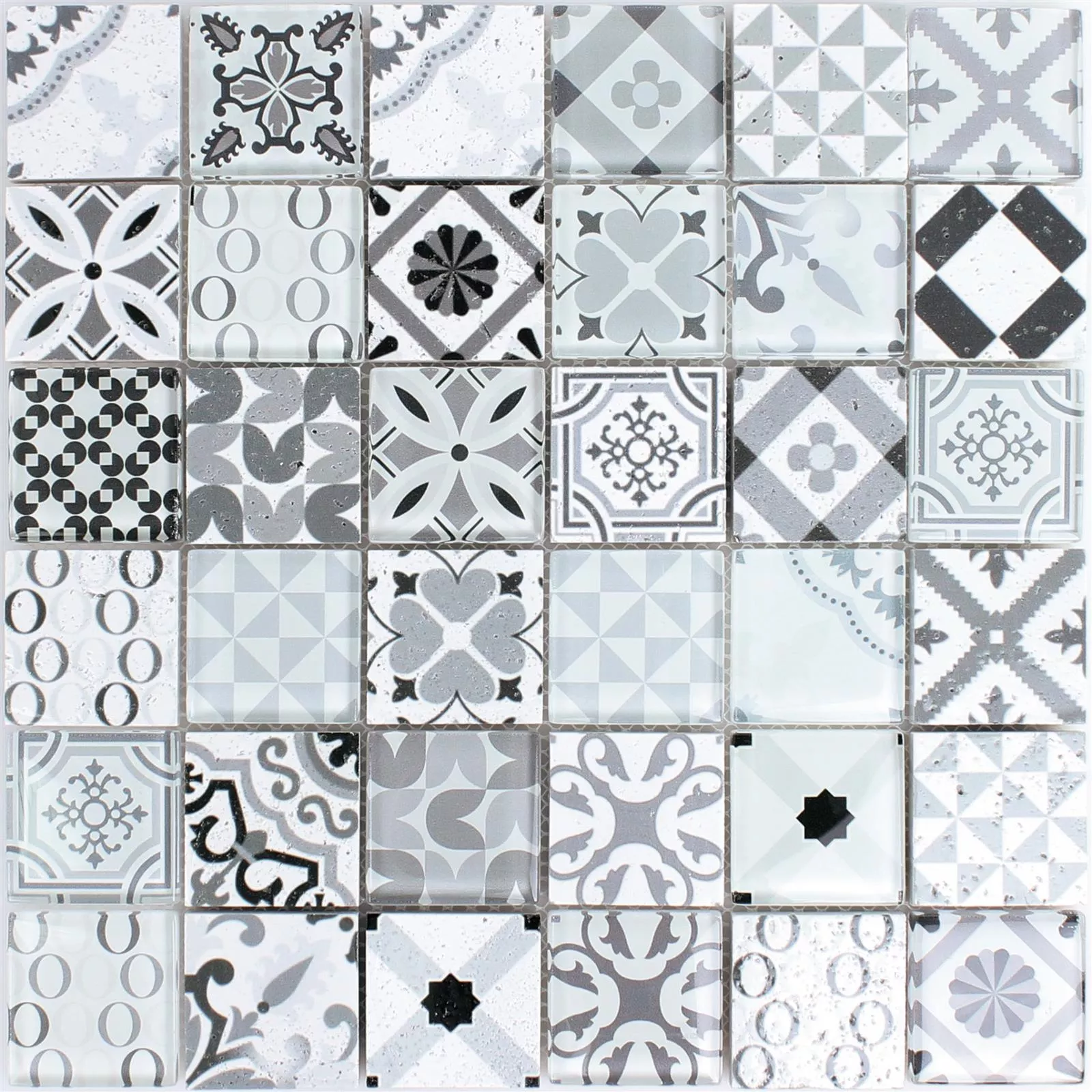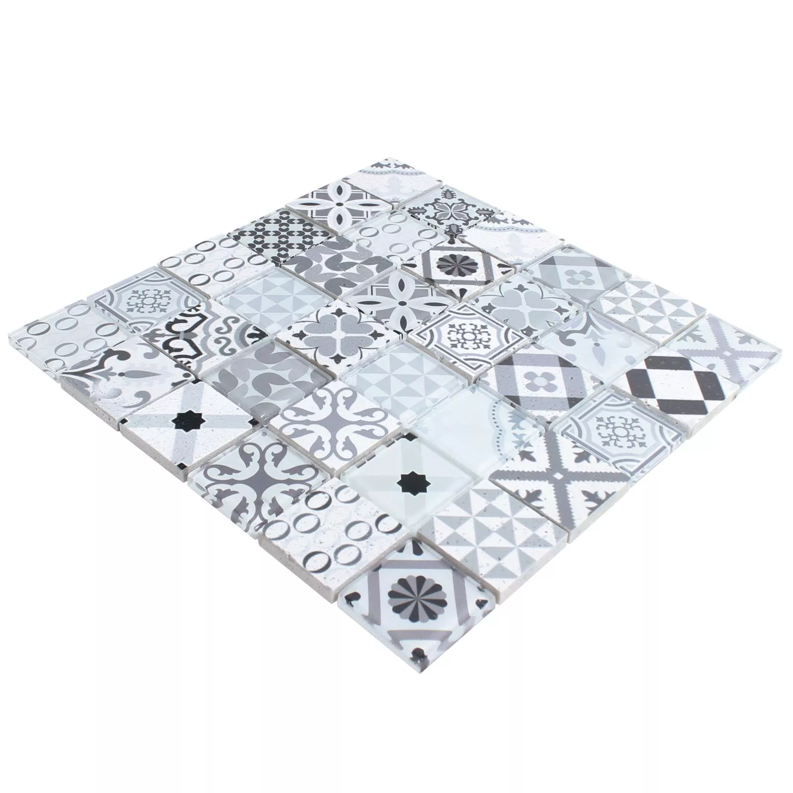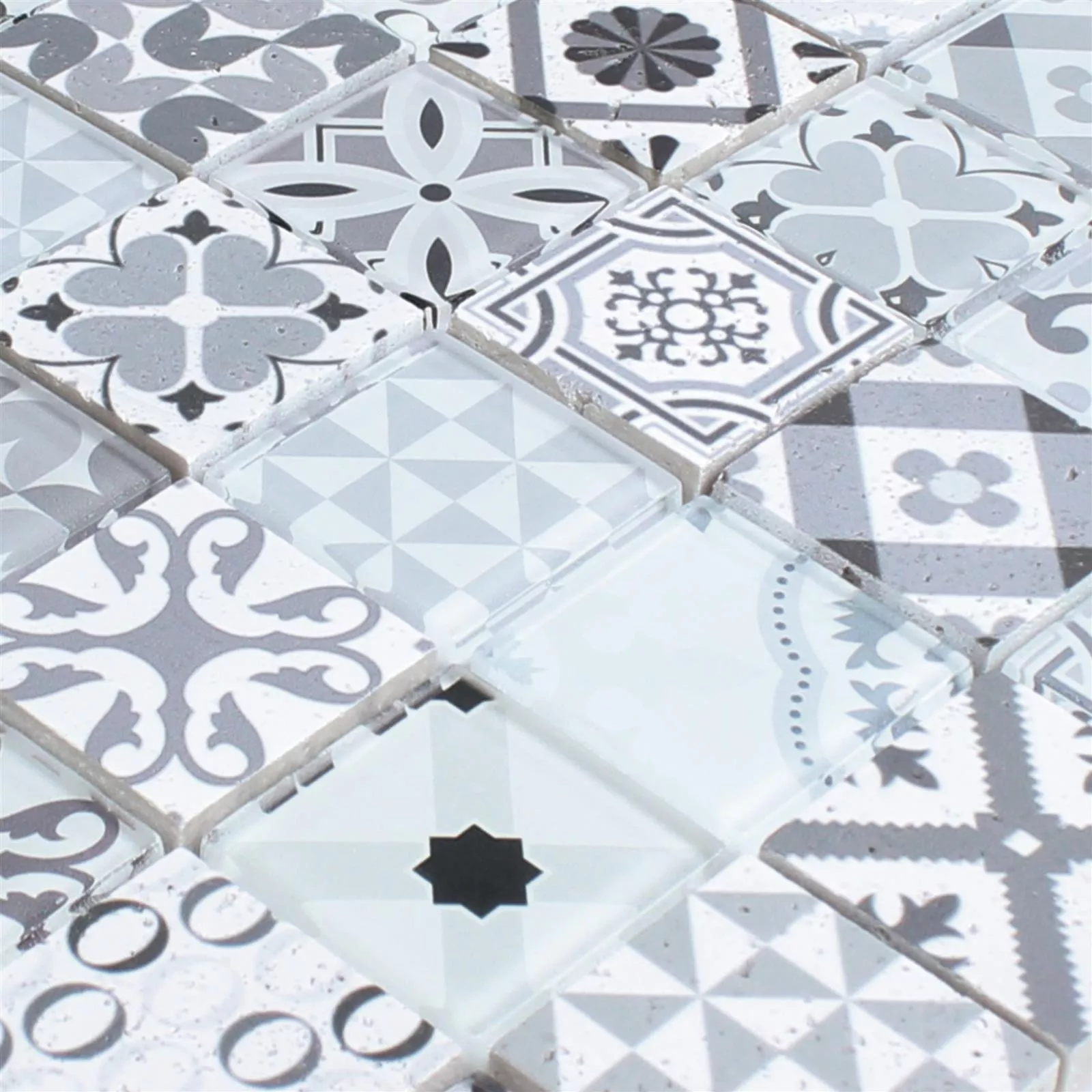 Los mosaicos se entregan en esteras, como se puede ver a menudo en estos días. Esto hace que colocar mosaicos sea mucho más fácil, de modo que puede colocar mosaicos en un baño mucho más rápido. El material utilizado para los mosaicos de piedra natural de vidrio Vintage Anopolis en gris blanco también incluye piedra natural y vidrio de alta calidad.