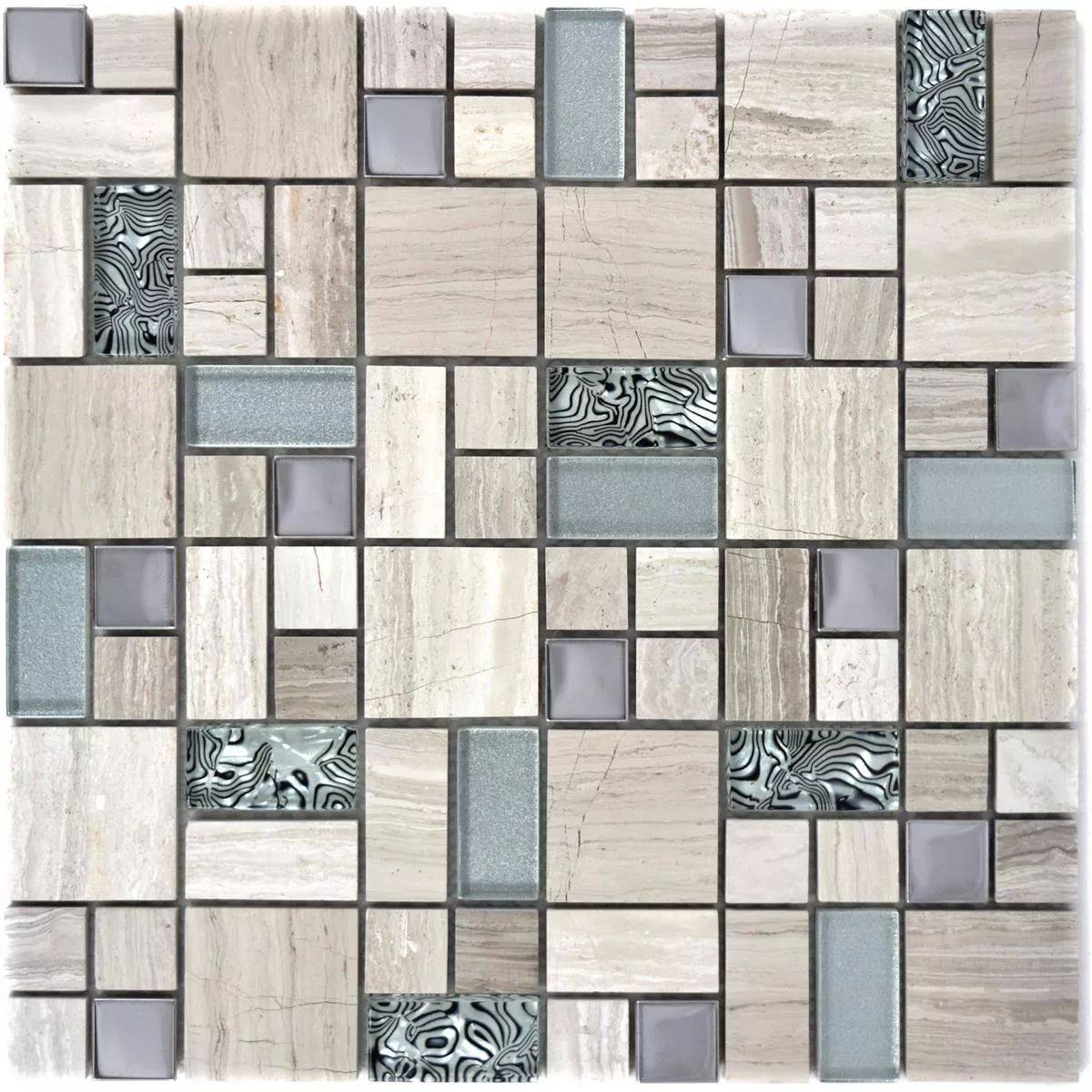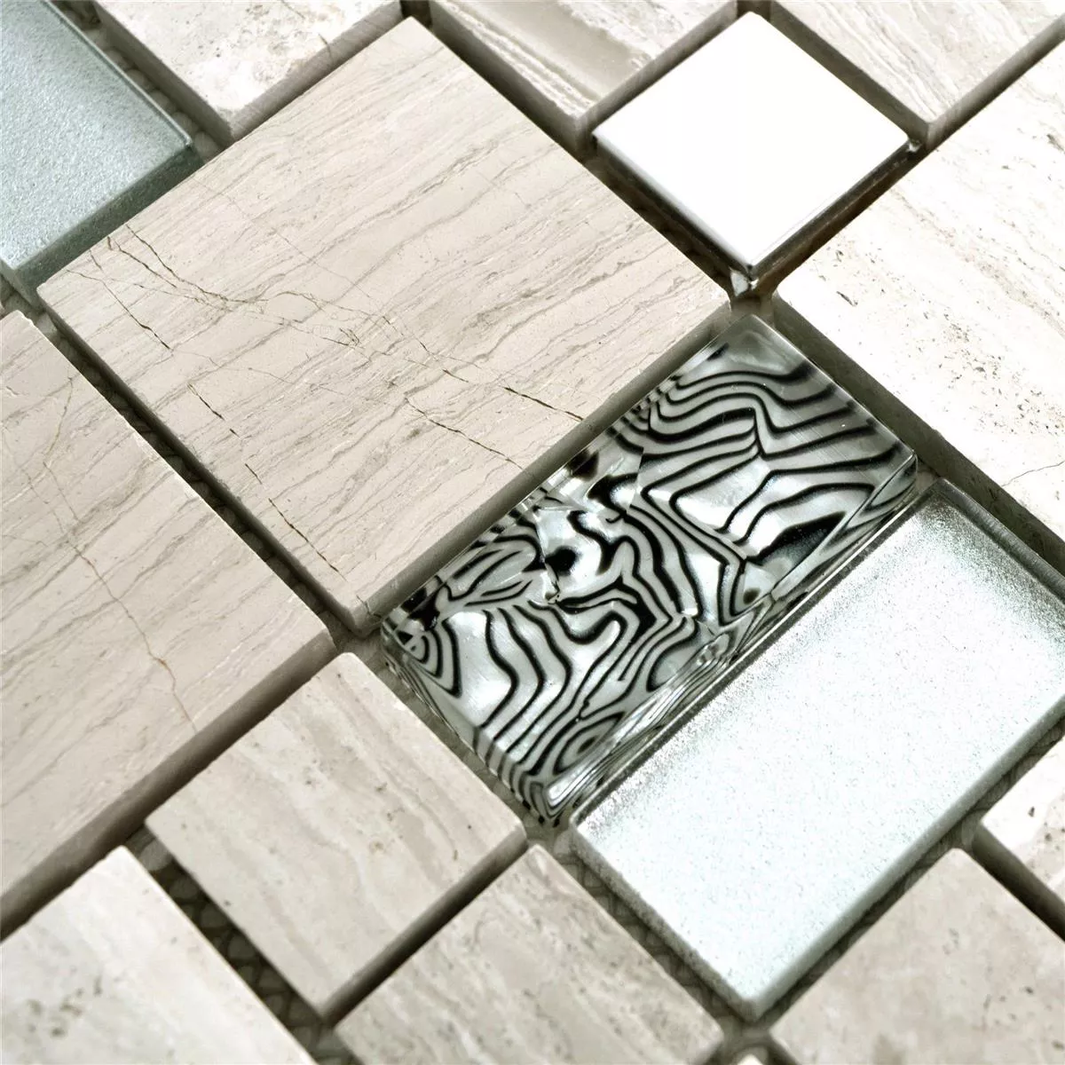 Los mosaicos para azulejos de cocina y salpicaderos de cocina en el aspecto Tinkabell están disponibles en gris y plateado y tienen una superficie brillante y mate. Las dimensiones de los mosaicos son de 30x30cm. Los mosaicos están hechos de vidrio, piedra natural y acero inoxidable. Los mosaicos se fabrican con un espesor de 8mm y tienen una superficie de 0,090m².