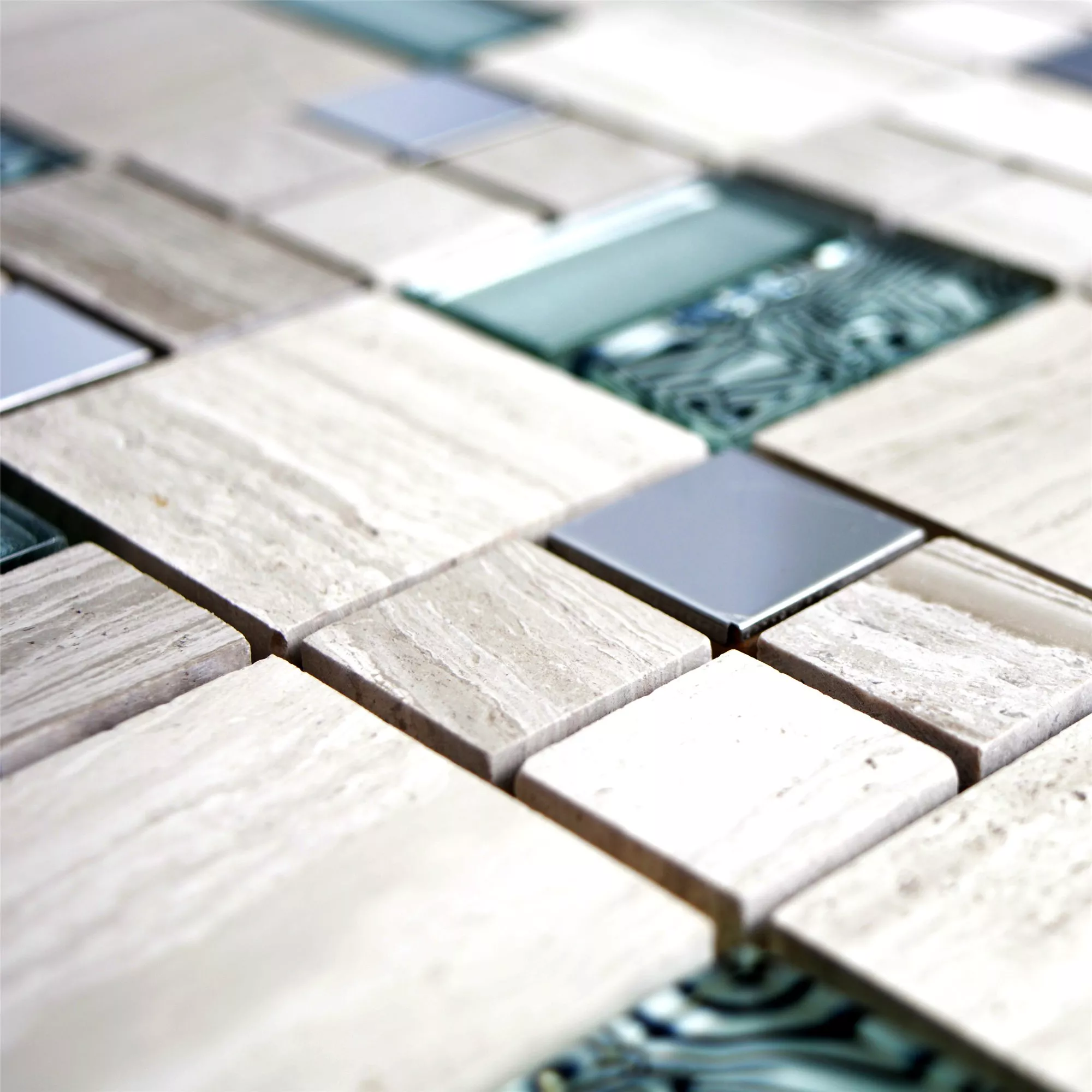 Los mosaicos para azulejos de cocina y salpicaderos de cocina en el aspecto Tinkabell están disponibles con dos patrones de superficie diferentes. Ambos patrones contienen elementos de vidrio, piedra natural y acero inoxidable. ¿Es hora de poner tu cocina al día? Con mosaicos de vidrio, piedra natural y acero inoxidable, puede darle a su cocina una creatividad individual.