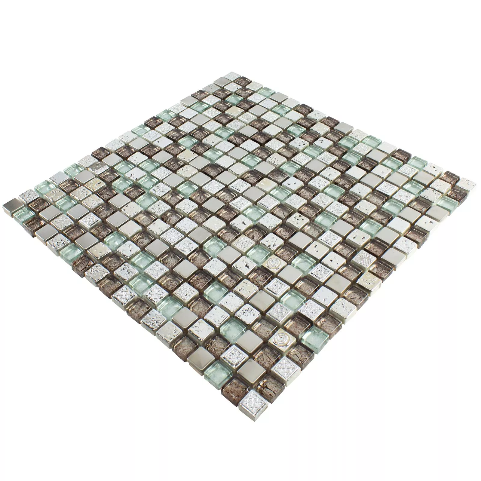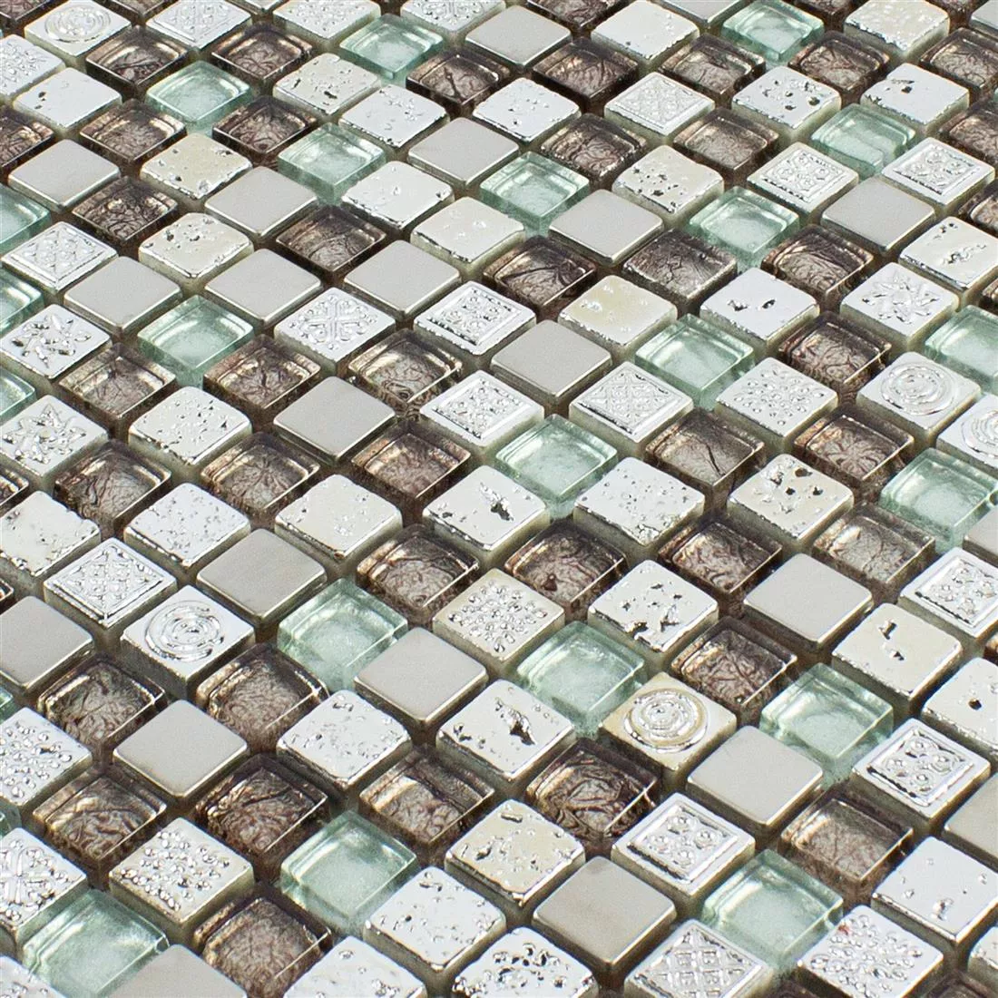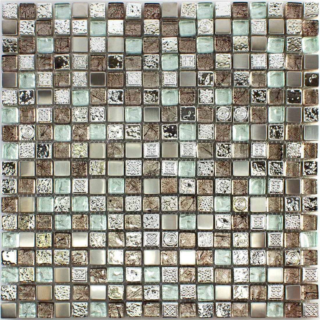 Cristal Resina Metal Azulejos De Mosaico Falco Marrón Plateado