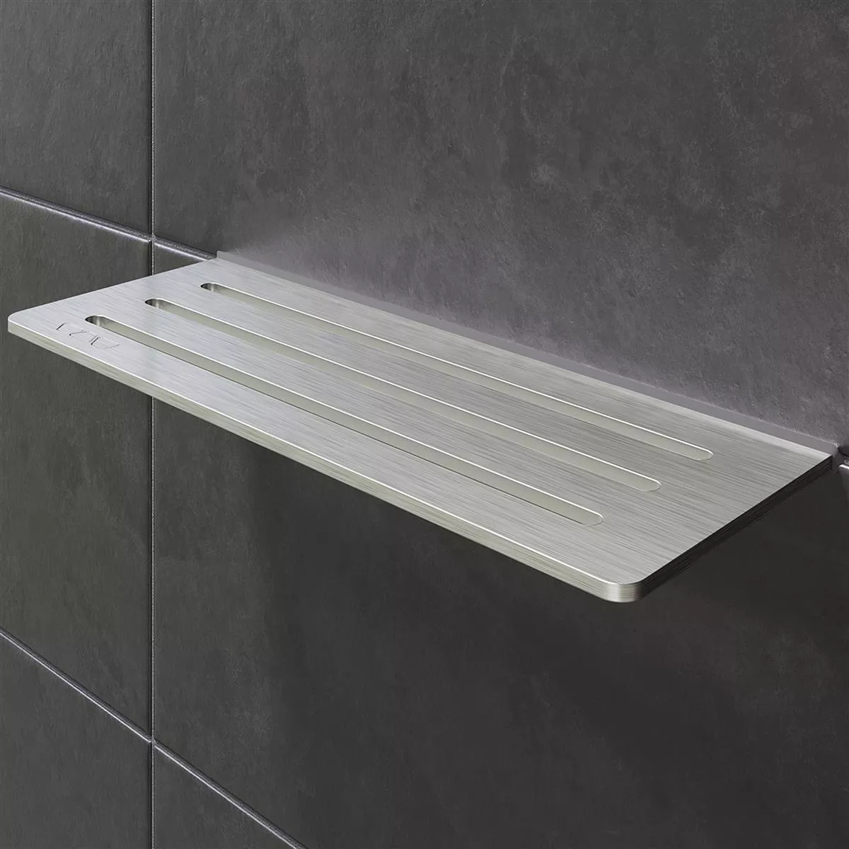 Los estantes Schlüter-SHELF-W miden 30 cm × 11,5 cm y, por lo tanto, ofrecen suficiente espacio para, por ejemplo, jabones o especias.
