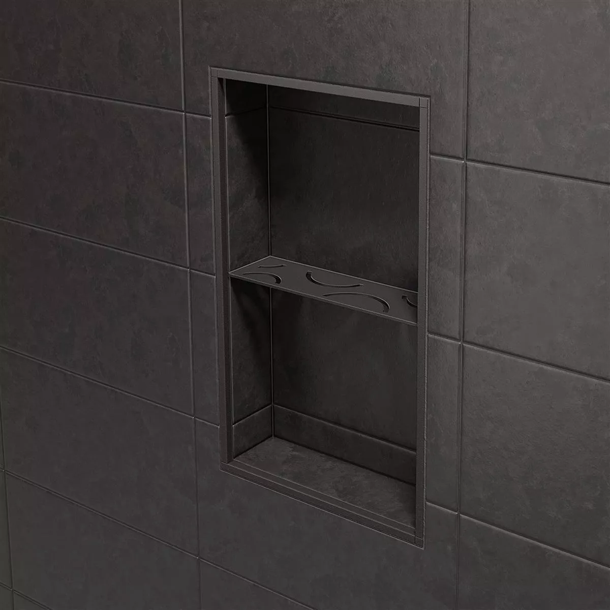 Schlüter-SHELF-N-S1 Antracita Estante de pared rectangular para nicho Con Schlüter-SHELF-N-S1 podrá equipar el nicho prefabricado Schlüter-KERDI-BOARD con un estante que se ajuste perfectamente al colocar los azulejos. Eso no es todo: también tendrá la máxima flexibilidad en términos de material y diseño. La estantería de pared de alta calidad está fabricada en acero inoxidable cepillado o en aluminio estructurado.