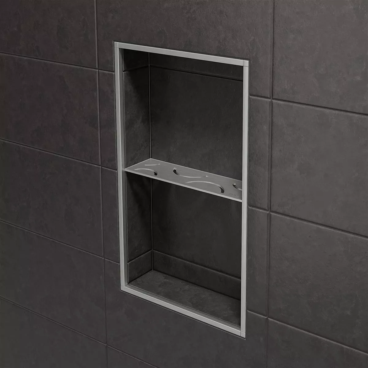 Schlüter-SHELF-N-S1 Plata Estante de pared rectangular para nicho Con Schlüter-SHELF-N-S1 podrá equipar el nicho prefabricado Schlüter-KERDI-BOARD con un estante que se ajuste perfectamente al colocar los azulejos. Eso no es todo: también tendrá la máxima flexibilidad en términos de material y diseño. La estantería de pared de alta calidad está fabricada en acero inoxidable cepillado o en aluminio estructurado.