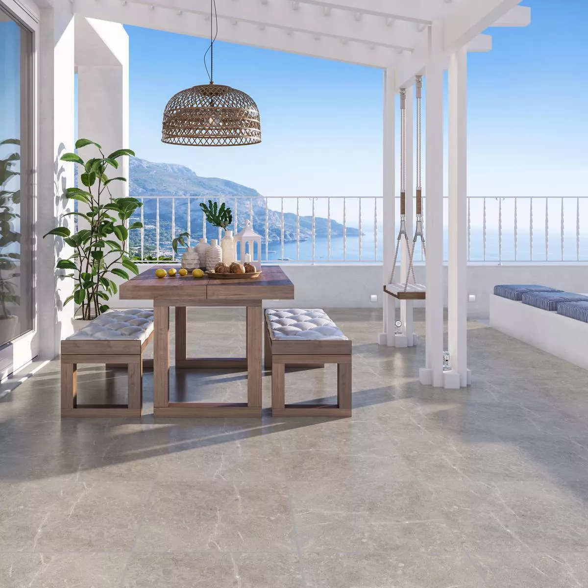 Las baldosas para patio de gres porcelánico con apariencia de piedra natural Arizona Grey ofrecen una excelente combinación de funcionalidad y diseño elegante. Sus propiedades resistentes a las heladas y al deslizamiento, así como su idoneidad para la calefacción por suelo radiante, los convierten en una solución versátil para muchos campos de aplicación. Ya sea en el salón, la cocina, el baño o el entorno comercial, estos azulejos convencen por su acabado de alta calidad y su elegante aspecto de piedra natural.