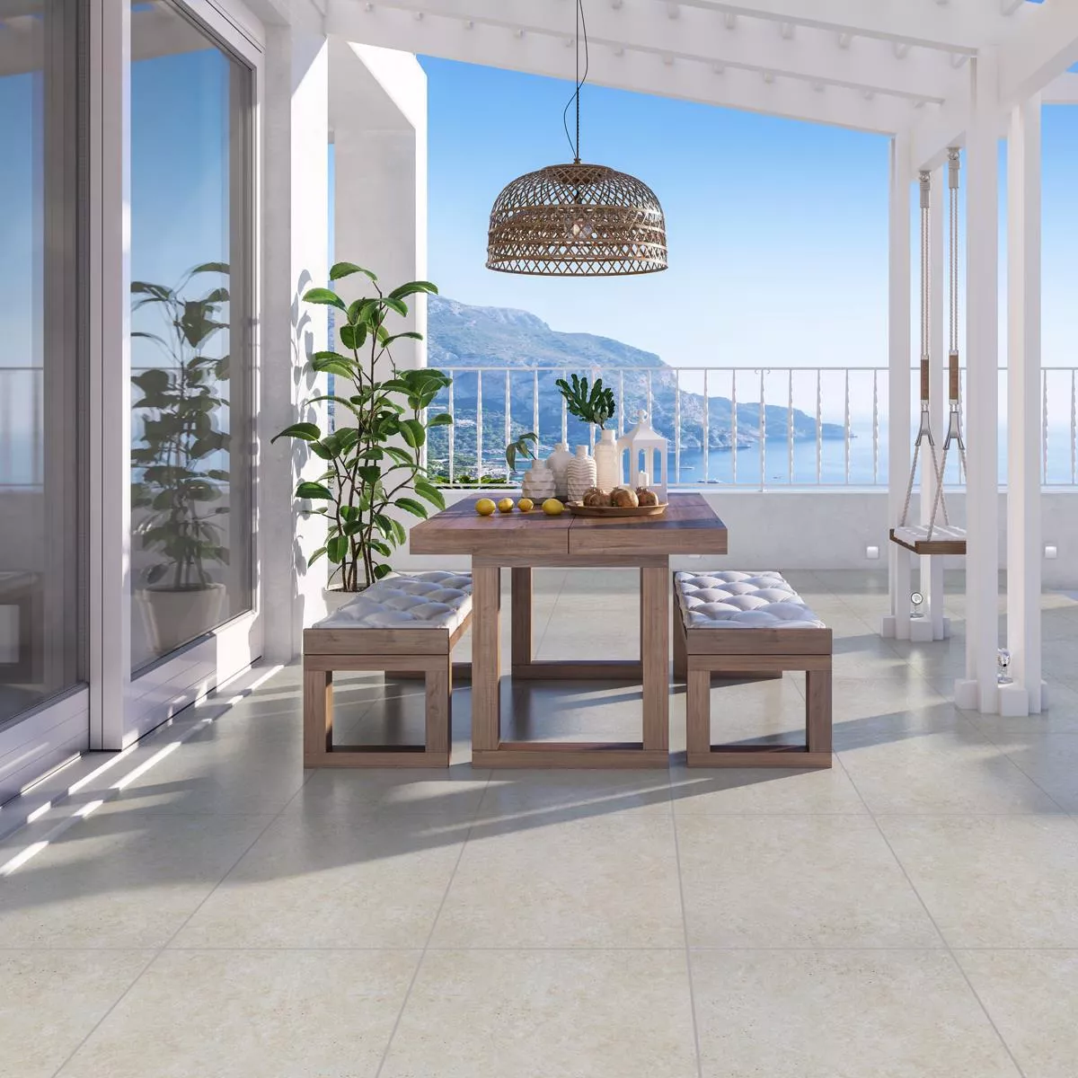 Las baldosas para terraza de gres porcelánico de Osborne en color beige ofrecen una solución elegante y funcional para diversos ámbitos de aplicación. Estos pavimentos de alta calidad son ideales para terrazas, balcones y zonas de paso y aportan a cualquier estancia un aspecto moderno y atemporal.