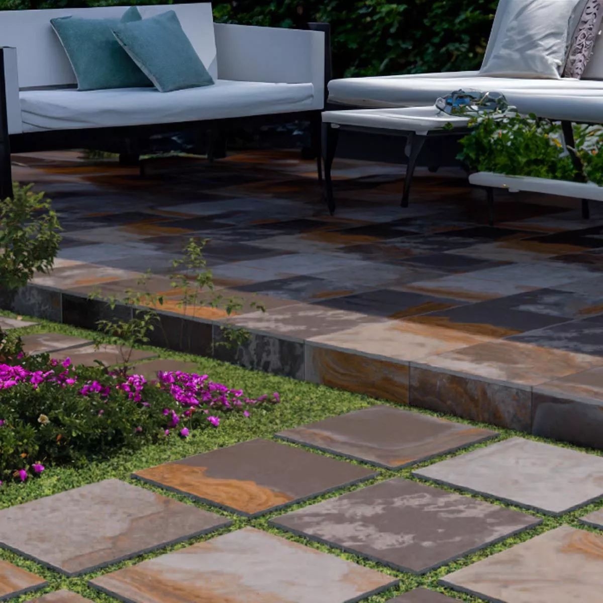 Losas Para Terrazas Azulejos De Gres Sanleo Aspecto De Piedra Natural Bronce 60x60x2cm