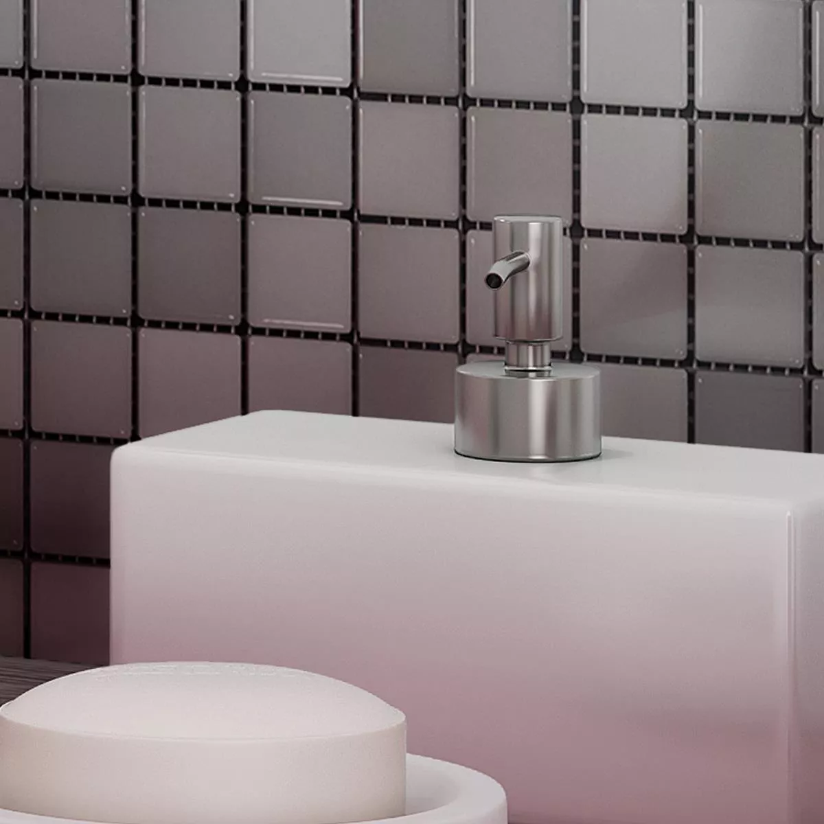 El mosaico cerámico Galleria en una mezcla de gris plateado aporta una elegancia moderna y brillante a cualquier habitación con su elegante aspecto metálico y su superficie mate. El azulejo viene sobre un tapete de 29,7 x 29,7 cm y ya está pegado a una malla listo para su instalación, lo que facilita su instalación tanto en paredes como en pisos.