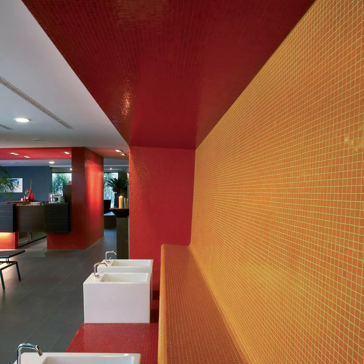 En y alrededor de las piscinas, donde las baldosas están expuestas continuamente a la humedad, ofrecen la resistencia necesaria.