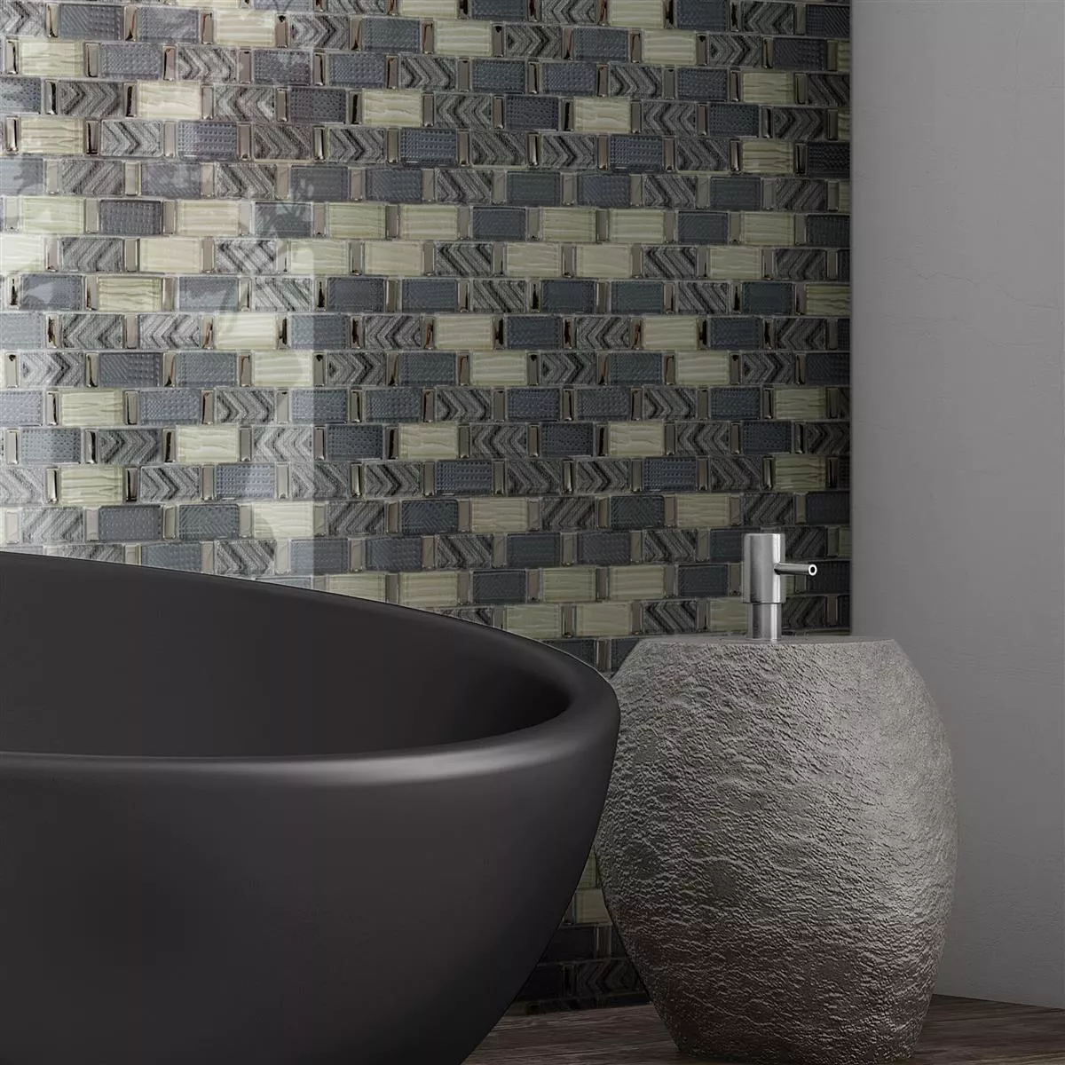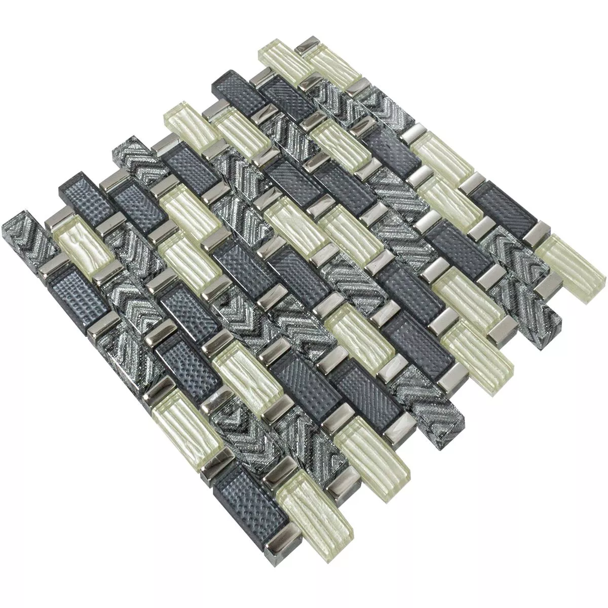Experimente la elegancia urbana con nuestros exquisitos mosaicos de vidrio "Buenos Aires Grey Beige Mix". Estos mosaicos de alta calidad son más que simples revestimientos de paredes: son una fusión artística de plata, beige y gris que añade un toque de sofisticación moderna a su espacio.