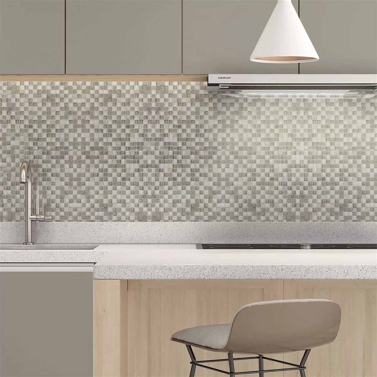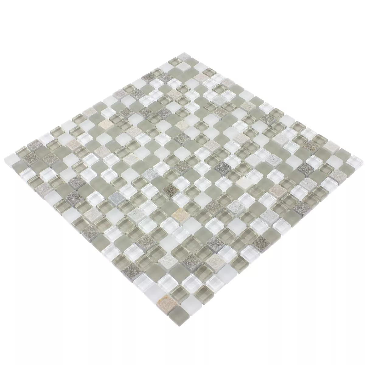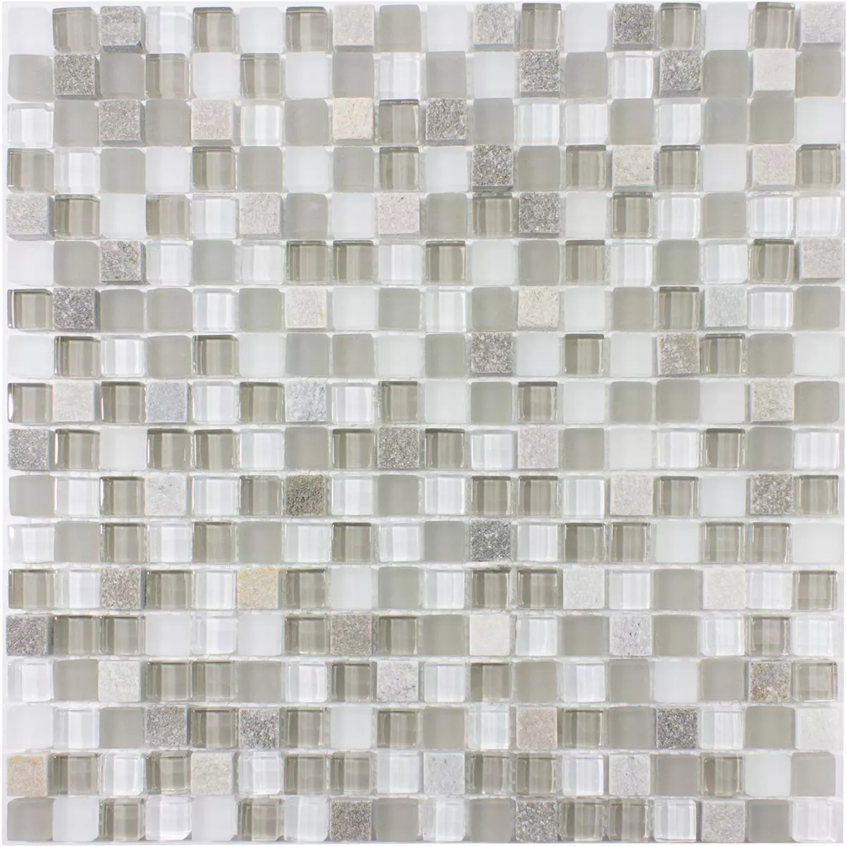 Los mosaicos de vidrio Delicias Glas Naturstein Mix ofrecen una mezcla única de piedra natural y vidrio, creando un aspecto moderno y atractivo. Los colores gris, beige y blanco armonizan perfectamente entre sí y pueden aportar un ambiente suave y relajante a cualquier habitación. El tamaño de piedra de 15x15 mm le da a los azulejos un buen nivel de detalle y textura.
